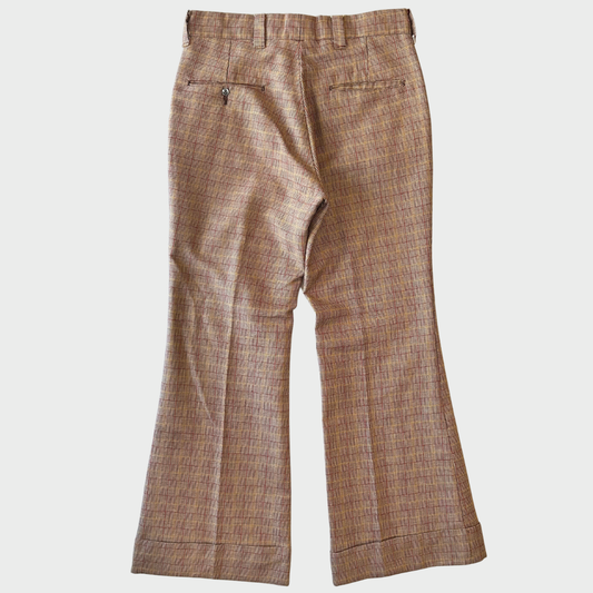 80's チェック柄 フレアスラックス ベルボトム 赤系 (サイズ不明) /B0393P-SO