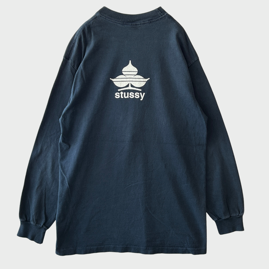 80's Stussy ステューシー クローバー ロゴプリント ロンT ネイビー (M)/A9324T-SO
