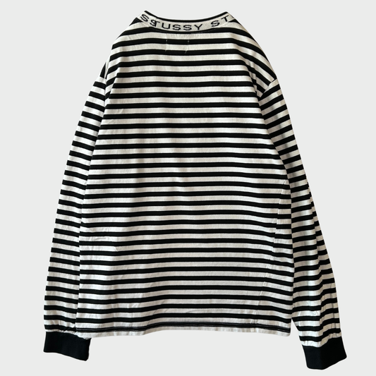 00's Stussy ステューシー ボーダーロンT 白黒 (L)/A9335T-SO
