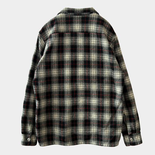 60's AMANA オープンカラーウールチェックシャツ 黒白赤(M)/A5095SH-SO