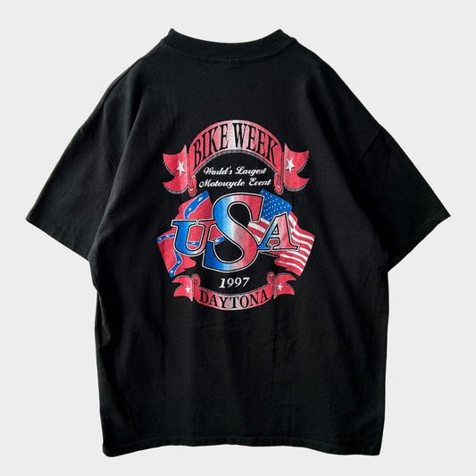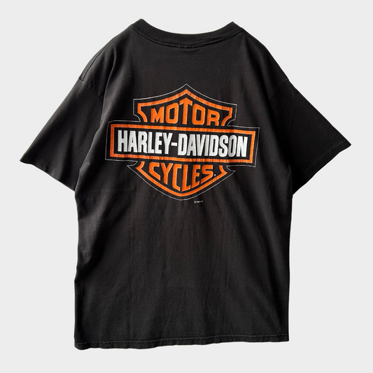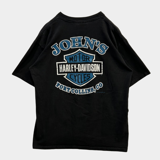 90's HARLEY DAVIDSON "JOHN'S FORTCOLLINS, CO" Tシャツ ブラック (L)/A6981T-SO