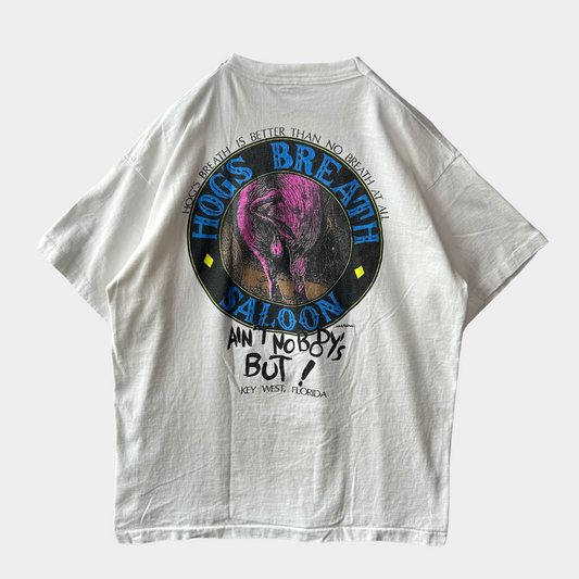 90's Fruit of the loom レストラン&バー ホッグズ・ブレス・サルーン ショップロゴ プリントTシャツ 白(XL)/B1945T-SO