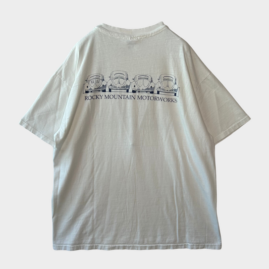 90's Hanes フォルクスワーゲン ビートル ROCKY MOUNTAIN MOTORWORKS T-shirt 白 (XL)/A6420T-SO