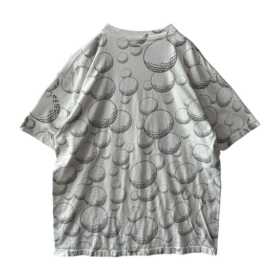 90's MICKEY UNLIMITED グーフィー ゴルフTシャツ ゴルフボール総柄 白(L)/B2166T-SO