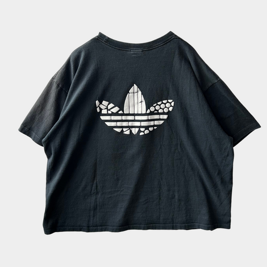 80's Adidas 発泡プリント ロゴTシャツ 黒 (2XL)/B1982T-SO