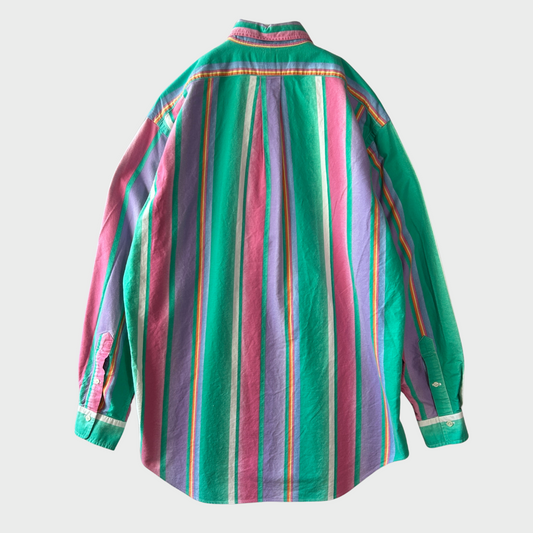 00's Ralph Lauren ストライプ コットンシャツ グリーン (L)/B1526S-SO