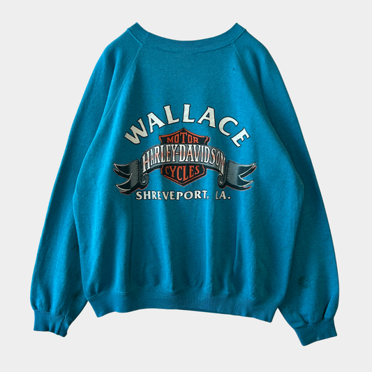 80's Harley Davidson ハーレー 発泡/ラバー両面プリントスウェット ターコイズ/A8411S-SO