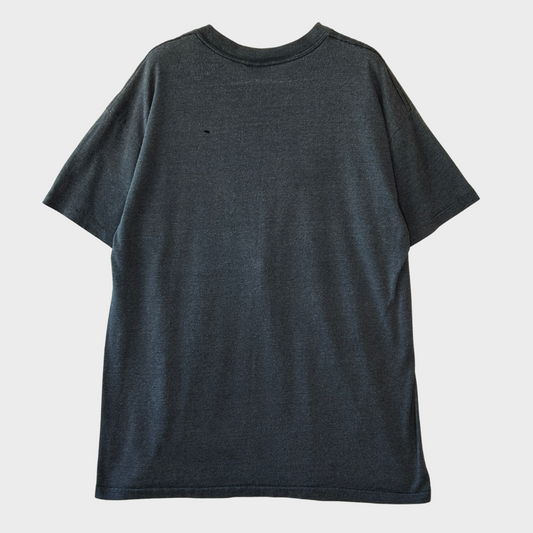 80's Hanes メッセージTシャツ シングルステッチ 黒(XL)B2807T-SO