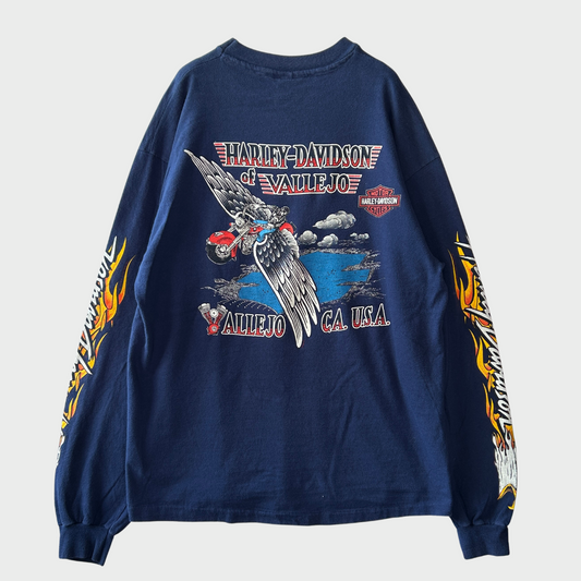 90's Hanes Harley-Davidson "Established 1903" 袖プリント ロングTシャツ 紺 (L)/B0661T-SO
