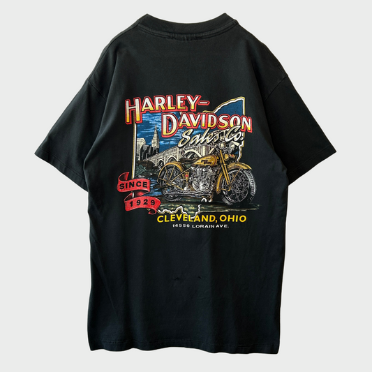90's Hanes Harley-Davidson Cleveland, Ohio イーグル プリントTシャツ 黒 (M)/A3659T-SO