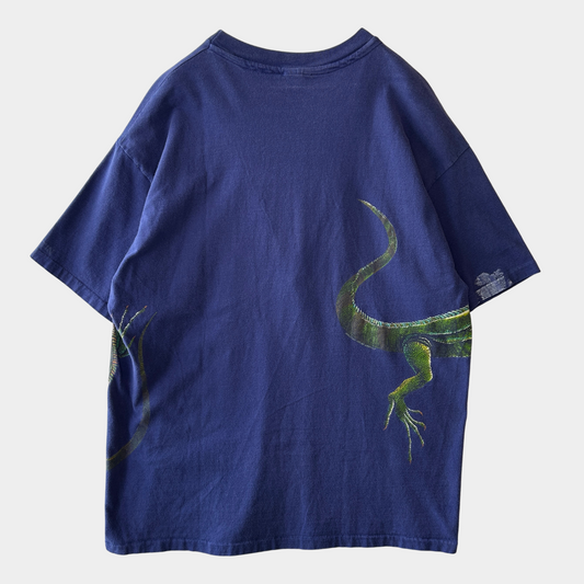 90's Hanes イグアナ アニマルプリントTシャツ 動物 紫(XL)/B2731T-SO