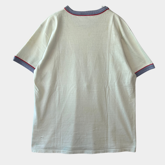 80's SCREEN STARS BUSCH ブッシュ アルコール リンガーTシャツ 白 (L)/B2798T0-SO