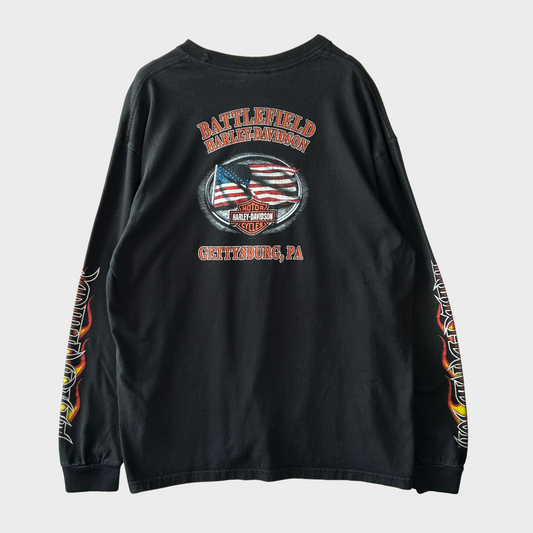 00's Harley-Davidson Sinister Attude 袖プリント ハーレーロングTシャツ 黒 (サイズ不明)/B3083T-SO