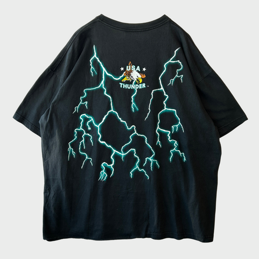 90's American Thunder Forever Free 狼 プリントTシャツ 黒 (2XL)/B2732T-SO