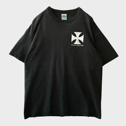 00's DELTA SHUT UP AND RIDE Ocean City Liquid Blue ストームライダー プリントTシャツ 黒 (XL)/B2521T-SO