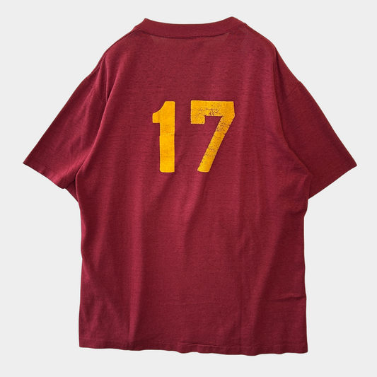 80's GULF COAST Sportswear "17"フロッキープリント ナンバリングTシャツ バーガンディー (XL)/A6887T-SO