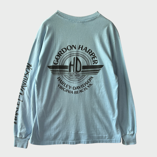 90's Hanes Harley-Davidson "The Screamin' Eagle" 袖プリント ロングTシャツ 水色 (L)/A6501T-SO