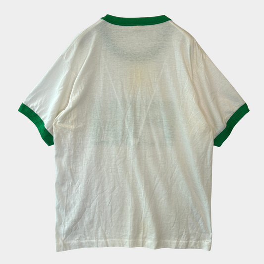 80's Screenstars FBI リンガーTシャツ 白緑(L)/B2744T-SO