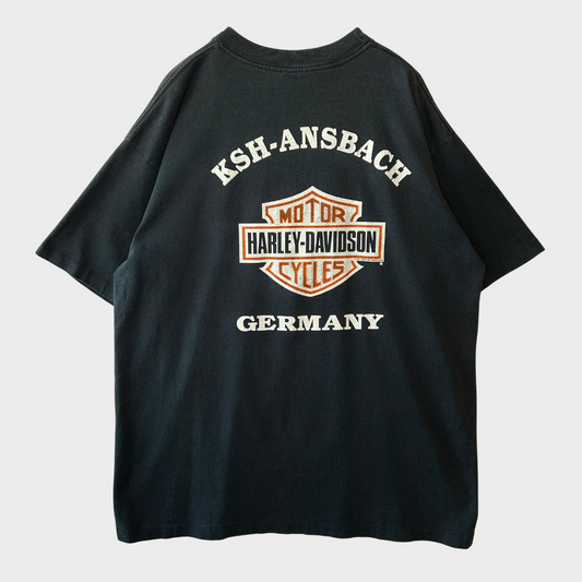 80's Harley-Davidson KSH-ANSBACH GERMANY ハーレープリントTシャツ 黒 (XL)/A3088T-SO