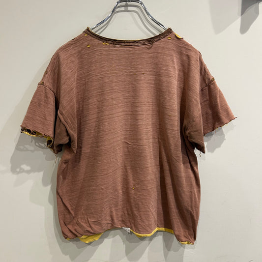 60’s Champion ダブルフェイスTシャツ 茶・黄(L)/A6319T-S0