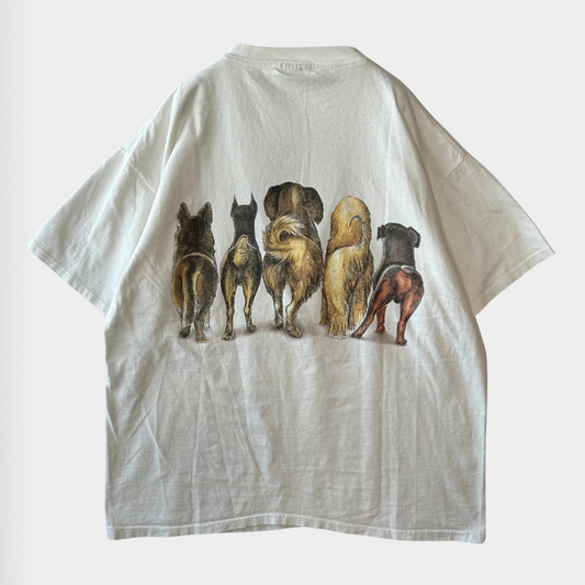 90's ONEITA Dog Art print T-shirt 白 (XL)/B1863T-SO