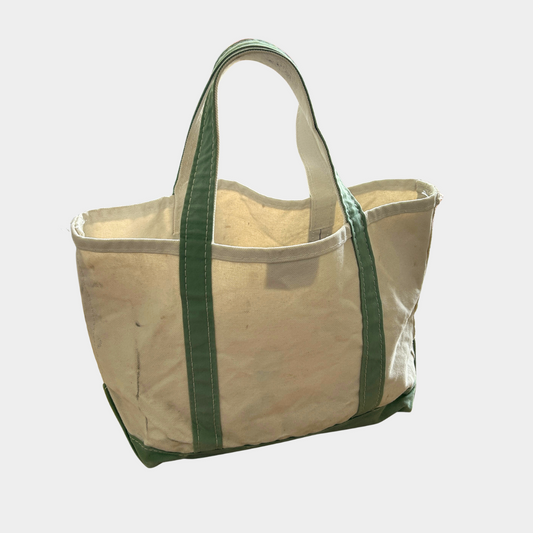 90's L.L.Bean Boat&Tote キャンバストート 白薄緑/B0996AC-SO