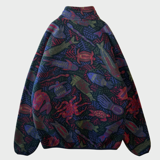 90's Columbia フリース ネイティブ デザインプルオーバー 青黒紫(L)/A8809F-SO