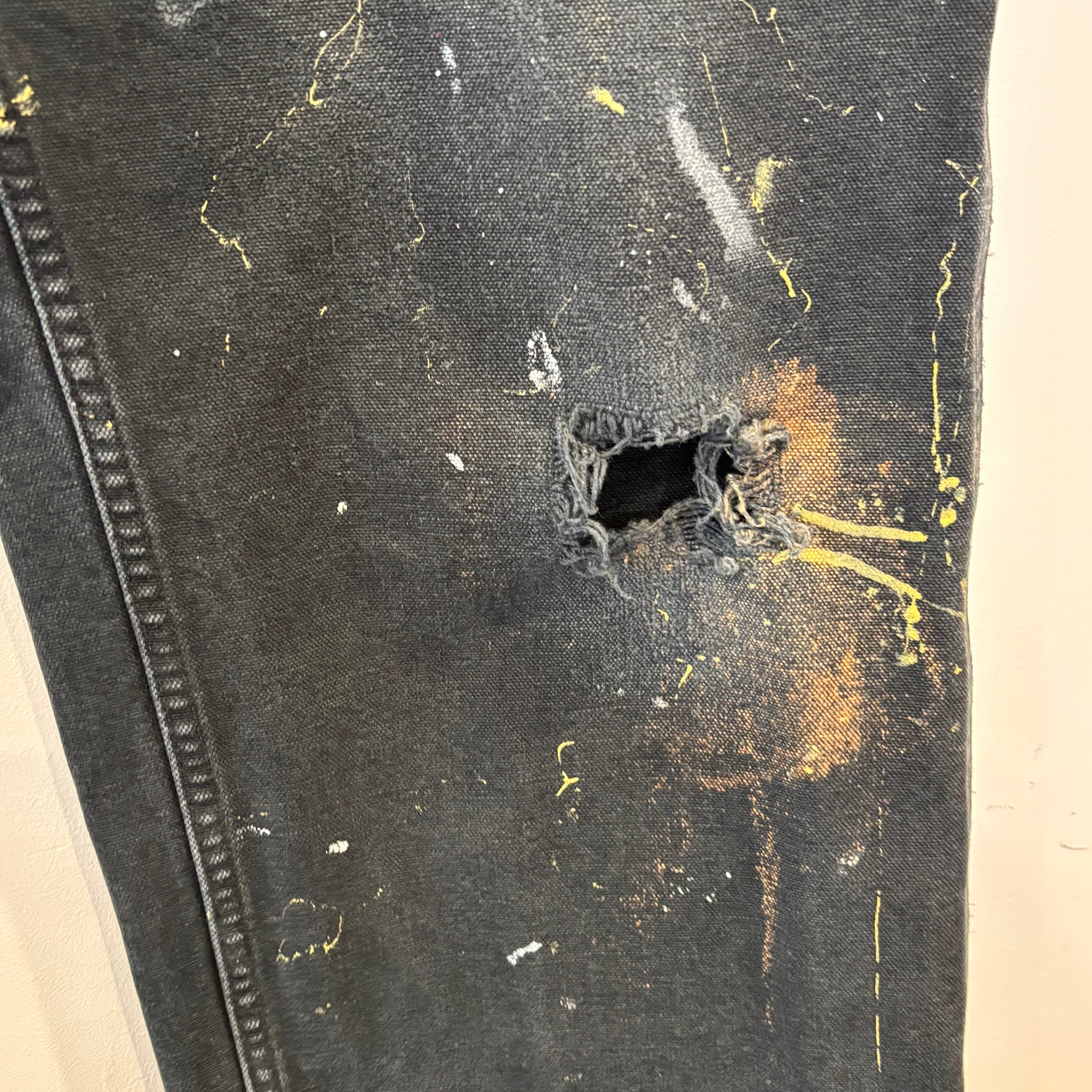 [状態特記]全体的に使用感あり、全体的にダメージあり、ペイント汚れあり、バックポケットタグ剥がれ