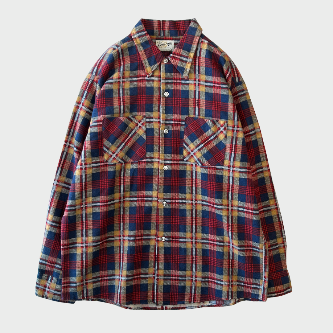 70's Bellcraft プリントネルシャツ 赤紺白ベージュ系 (L)/A6962S-SO