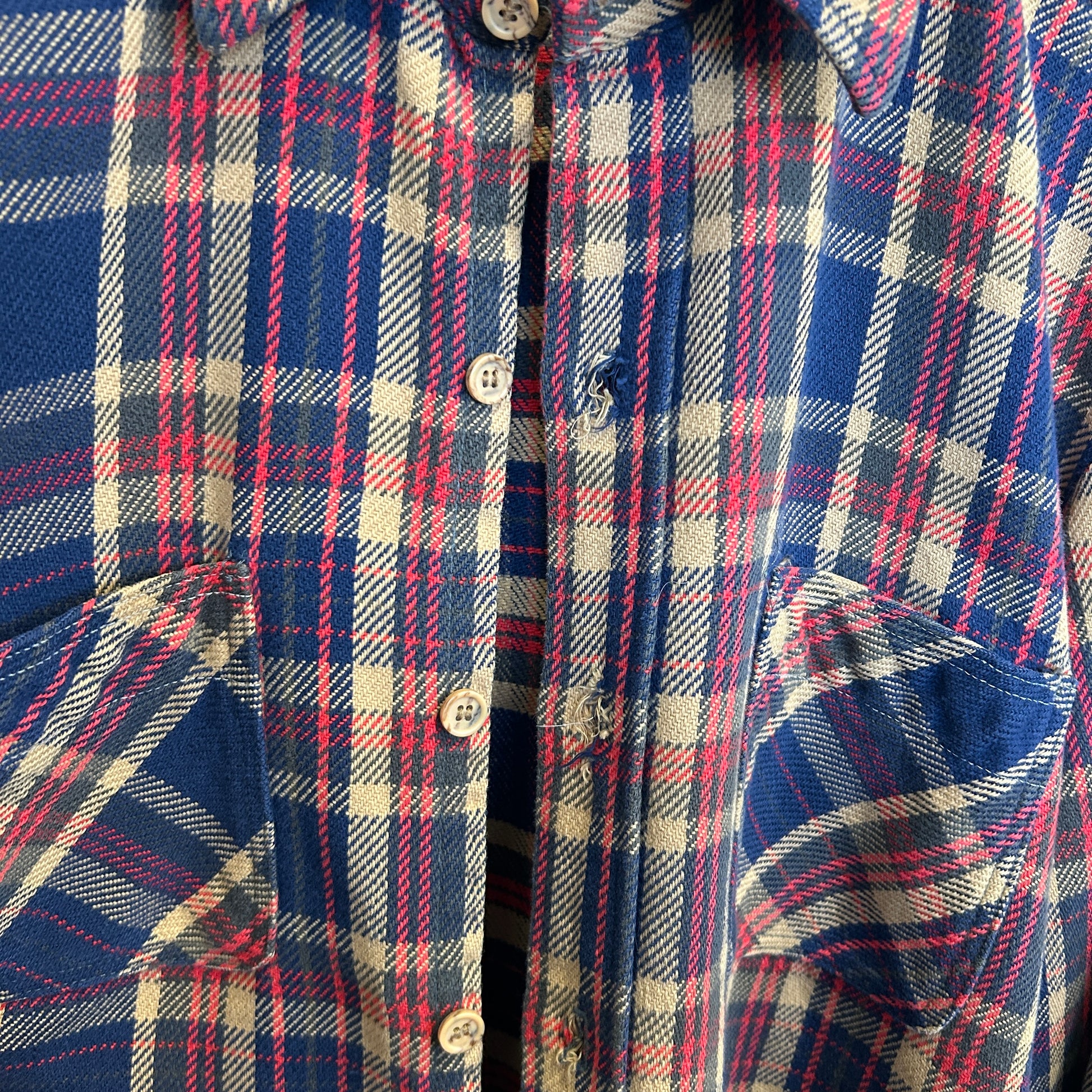 70's BIG MAC ビッグマック 単色タグ ネルシャツ 襤褸 ベージュ/ネイビー(M)/A8083SH-SO