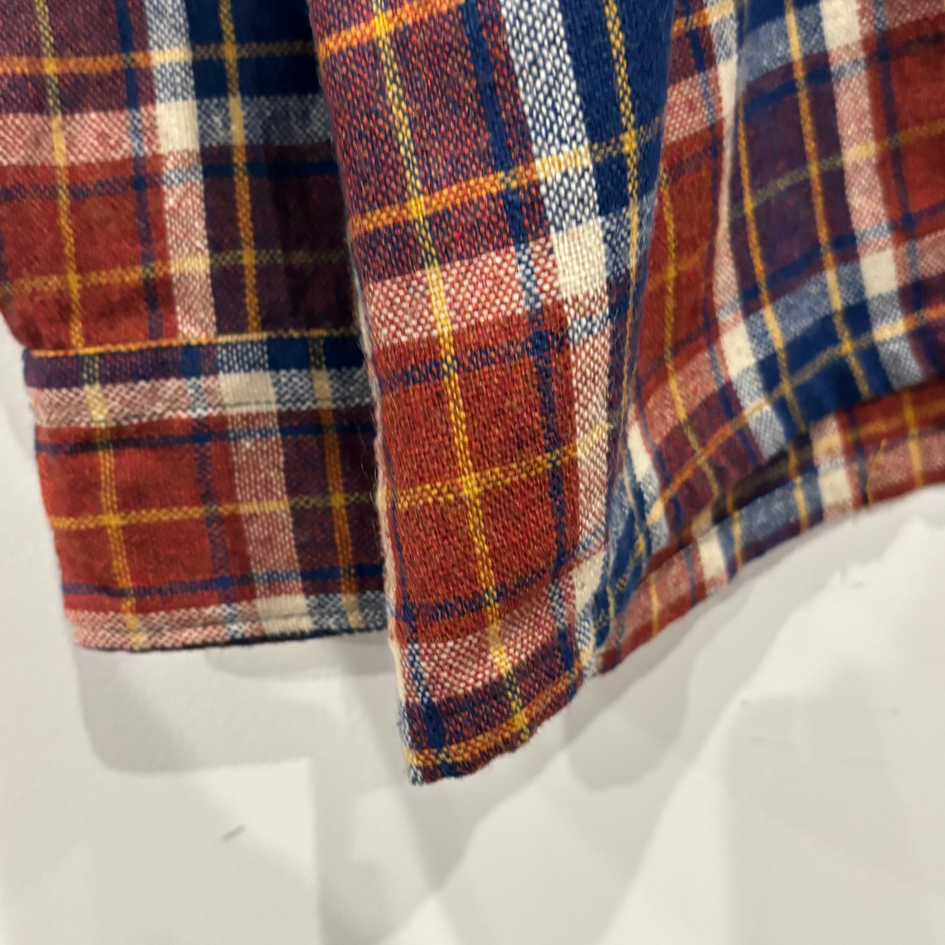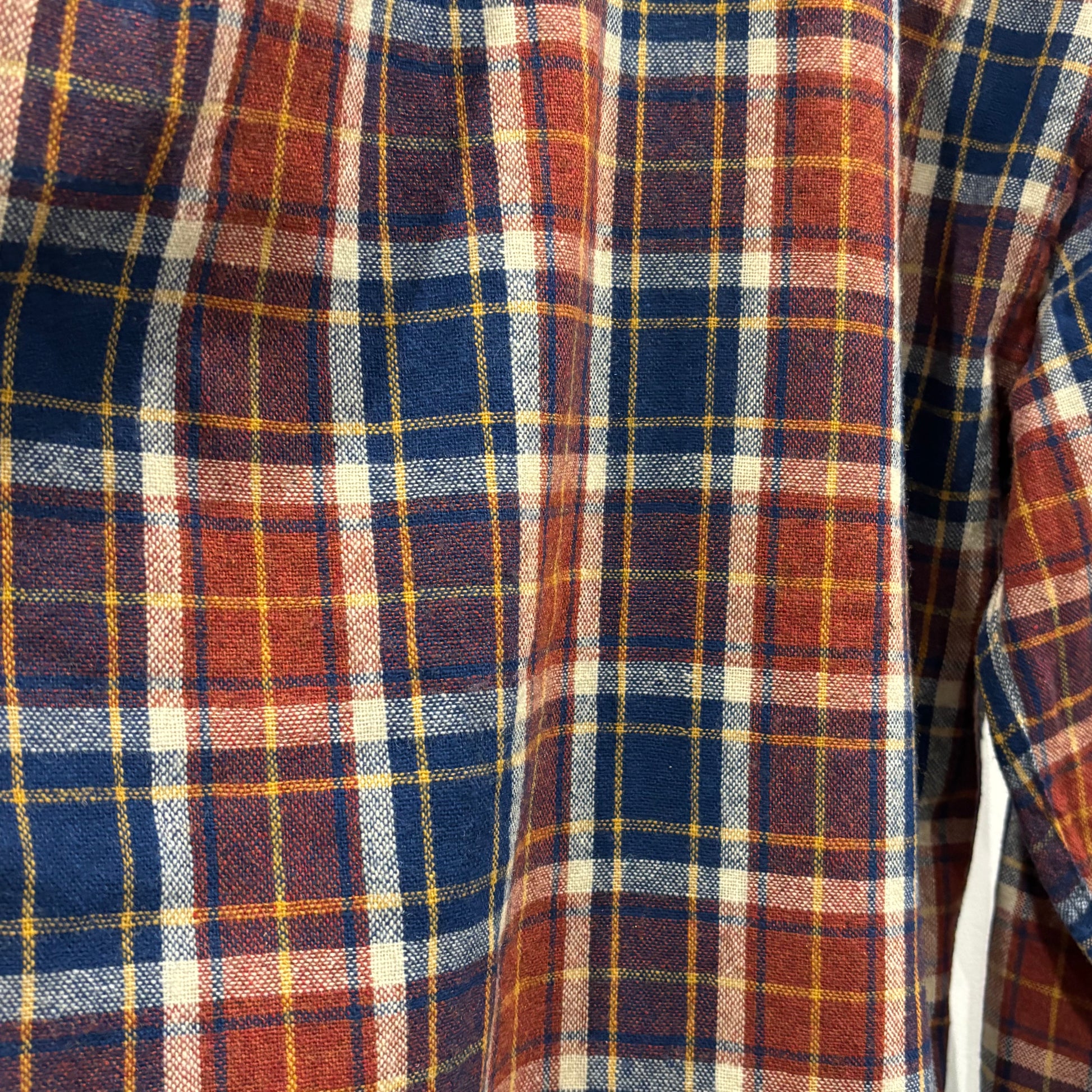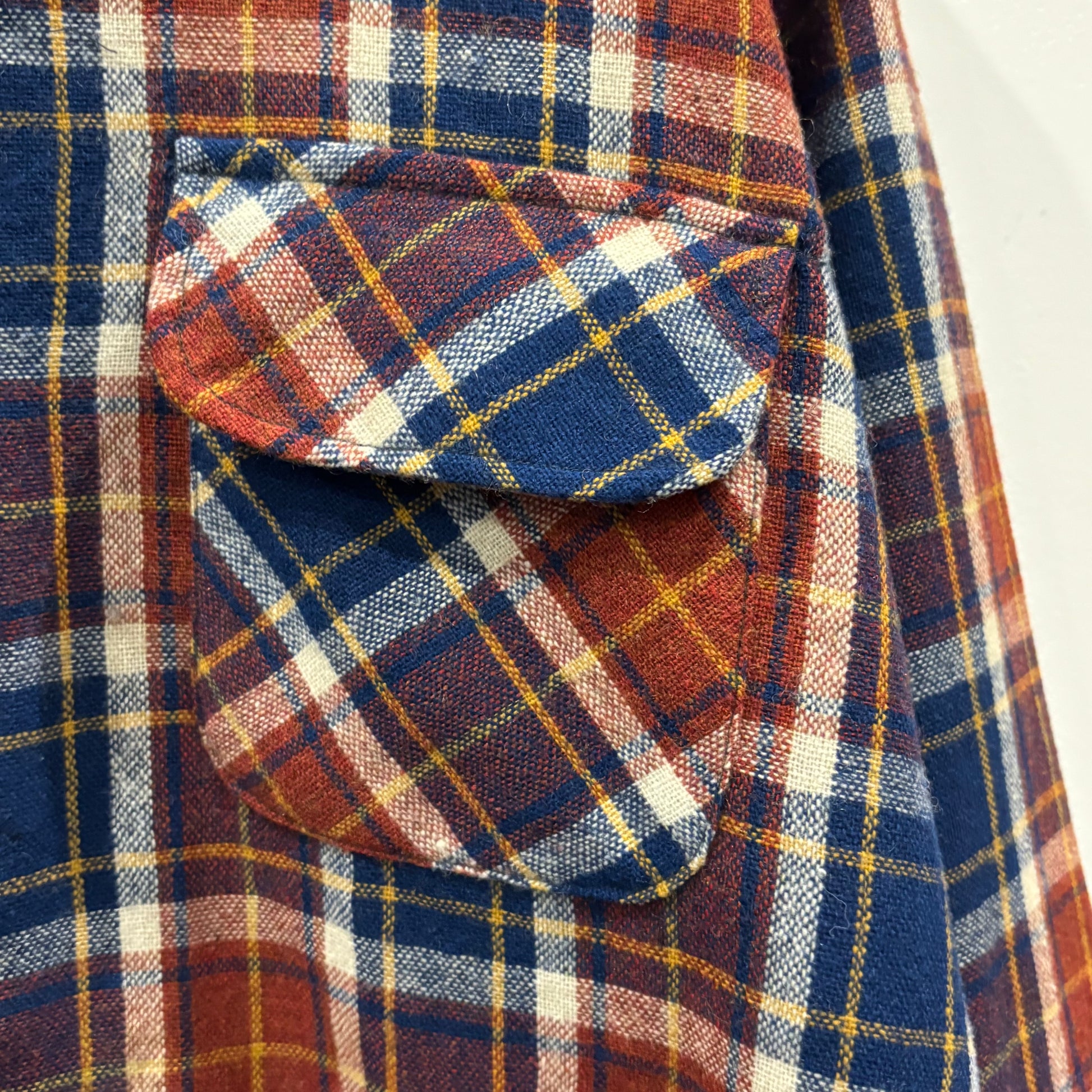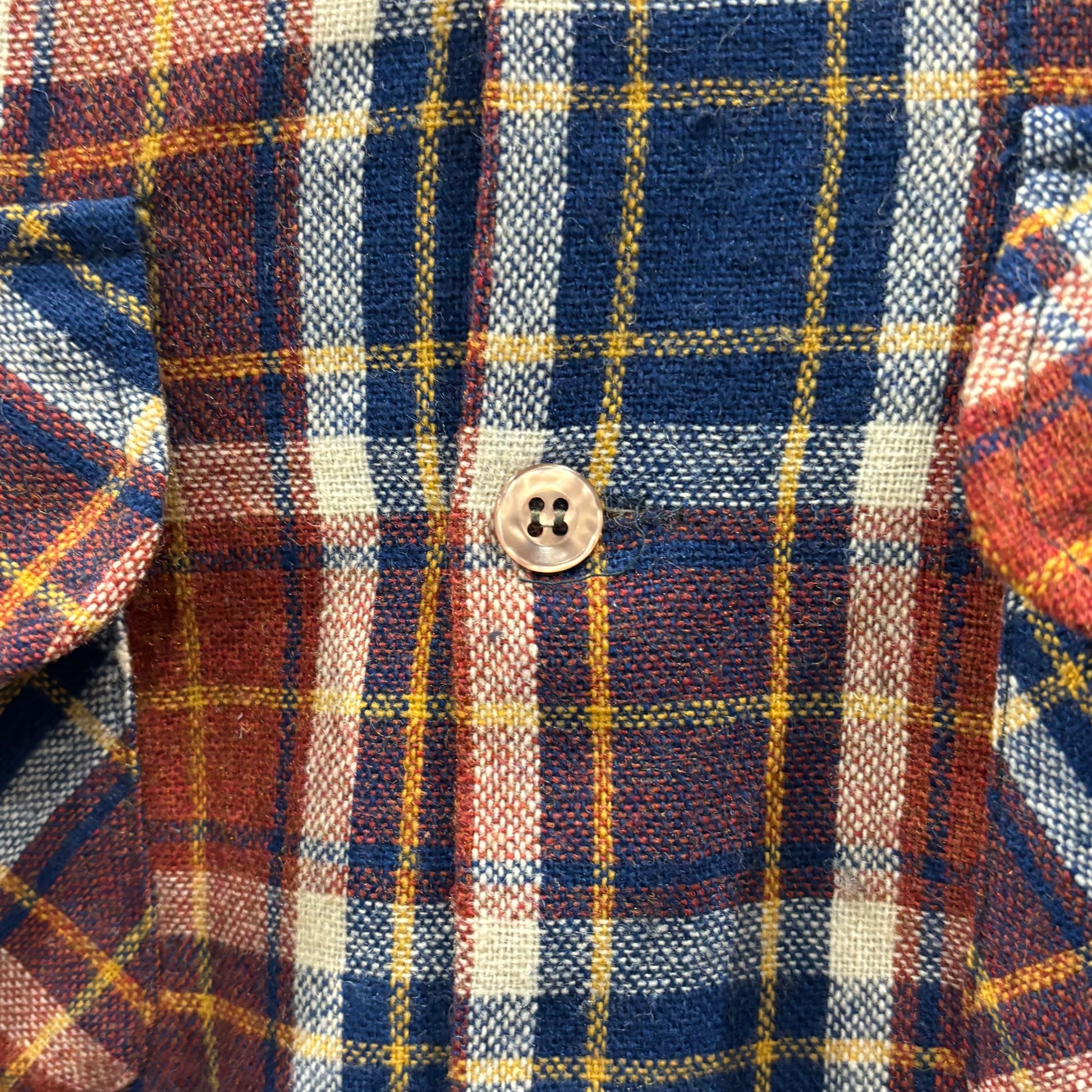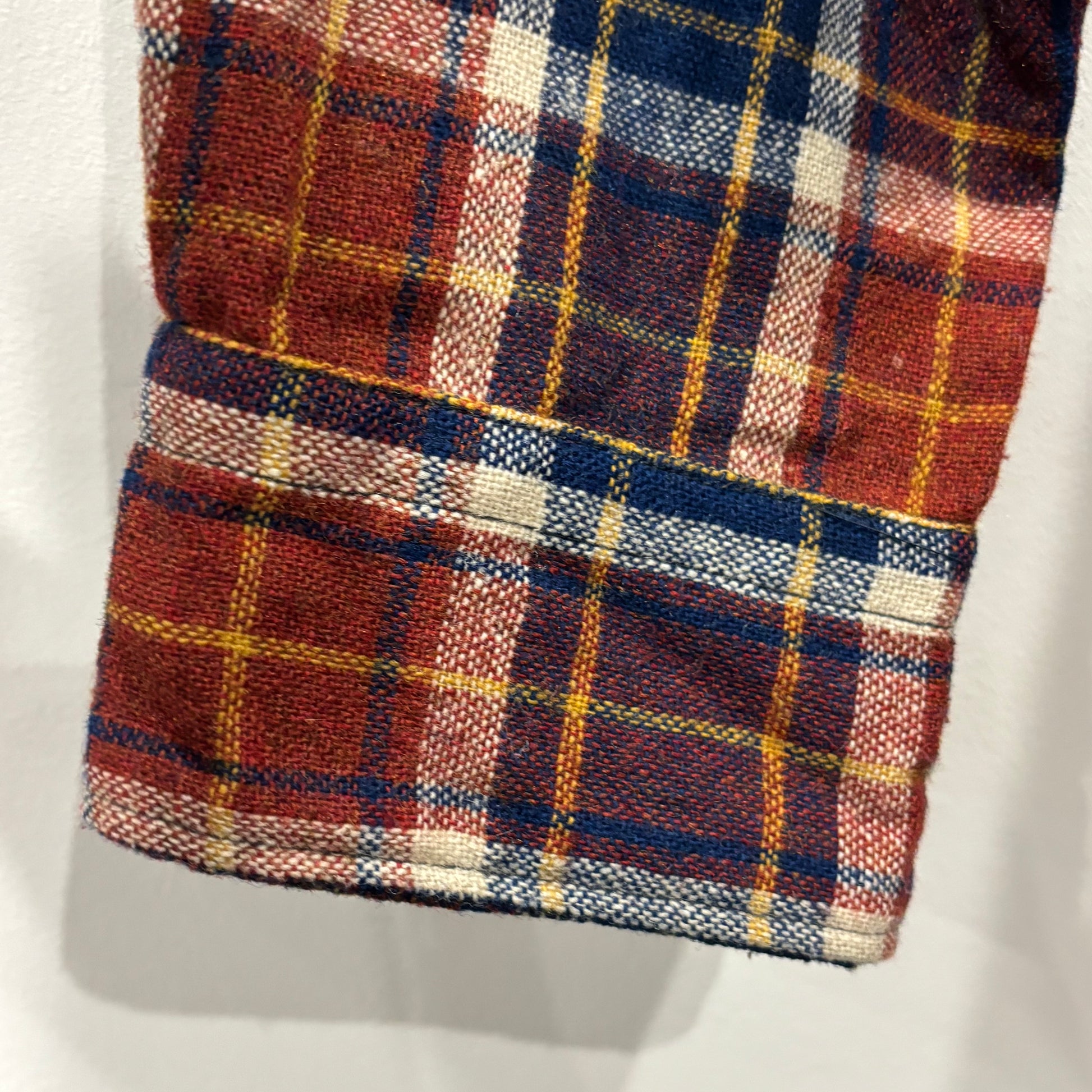 70's JCPenney モンゴメリーワード ウール オープンカラーチェックシャツ 紺黄白橙 (M)/A5096S-SO