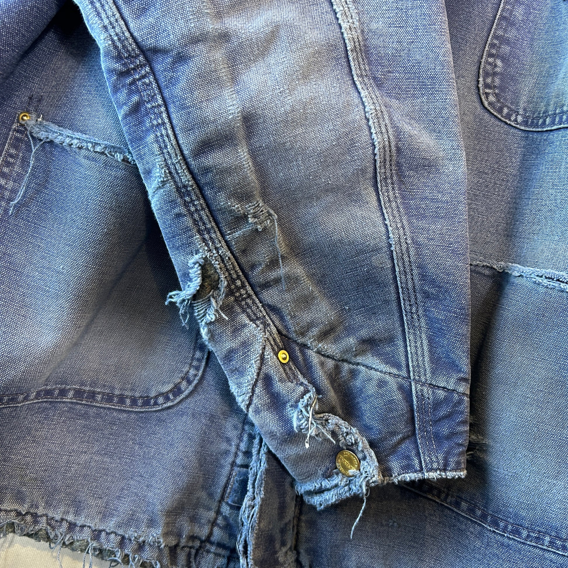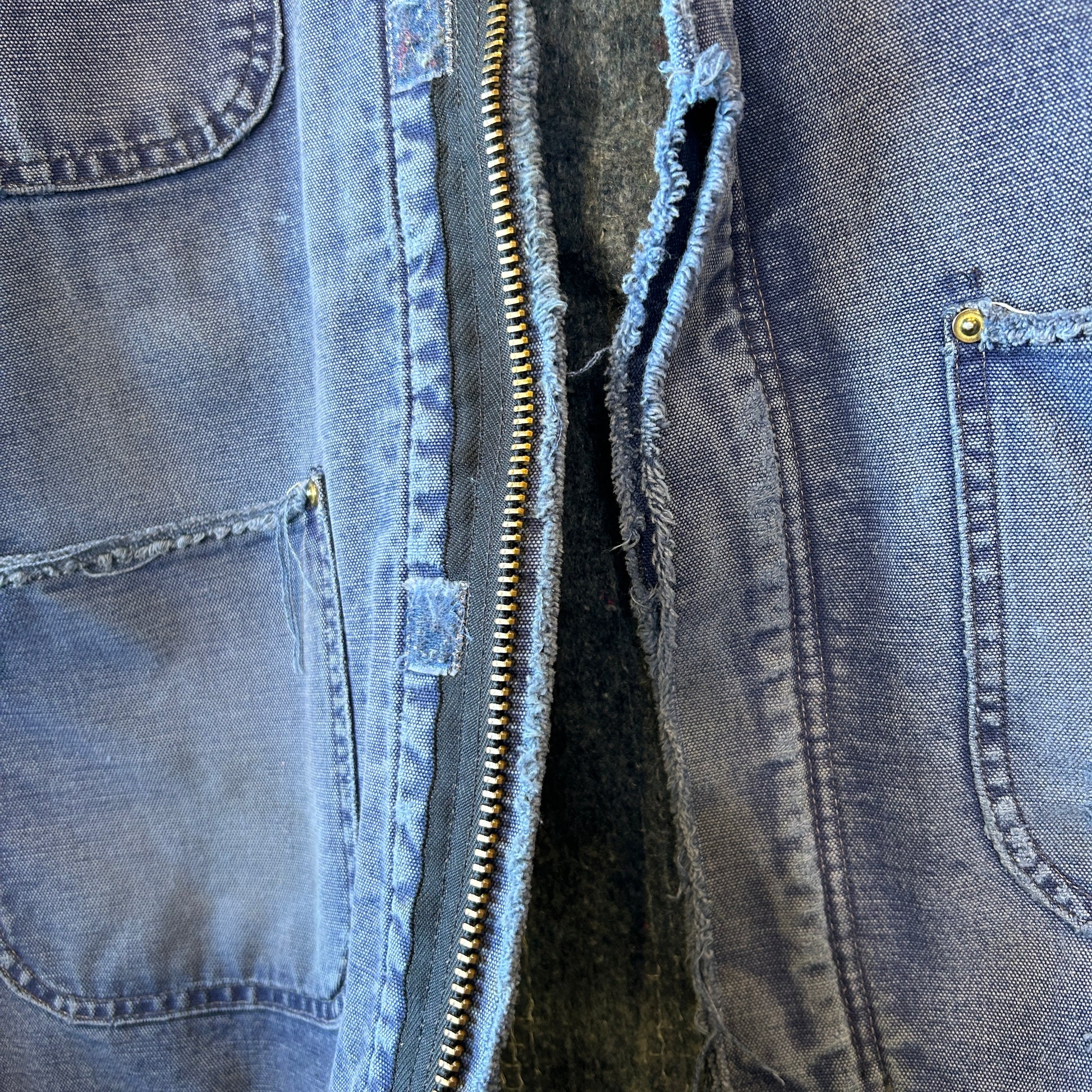 【商品詳細】Stussyコラボでも有名なネイビーカラーのチョアコートです。通常のチョアコートと違って100周年モデルはフロントがジッパータイプとなっています。フェードやダメージの雰囲気も魅力的な一着です。