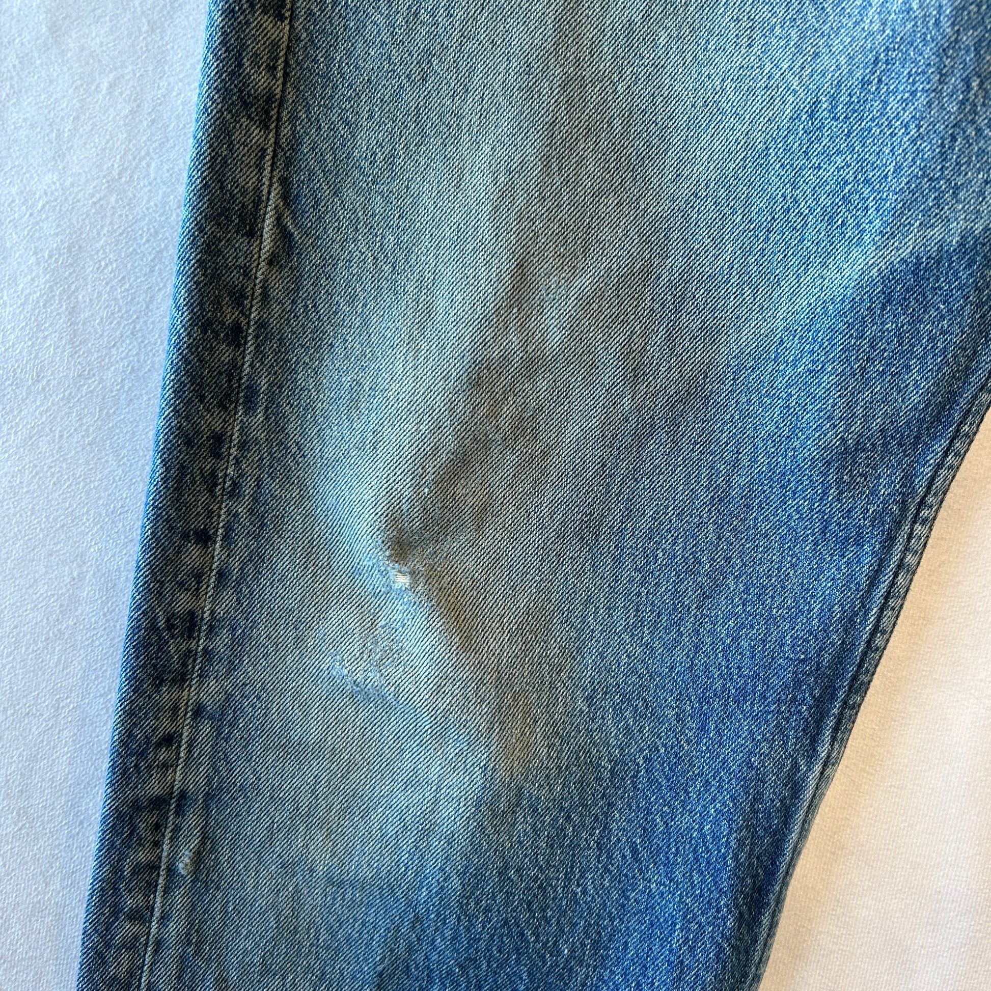 [状態特記]全体的に使用感・軽度の傷や汚れ有り、両膝部分に擦れ有り、左バックポケットほつれ有り、右バックポケット擦れ・ダメージ有り、裾に擦れ有り、裾直しあり