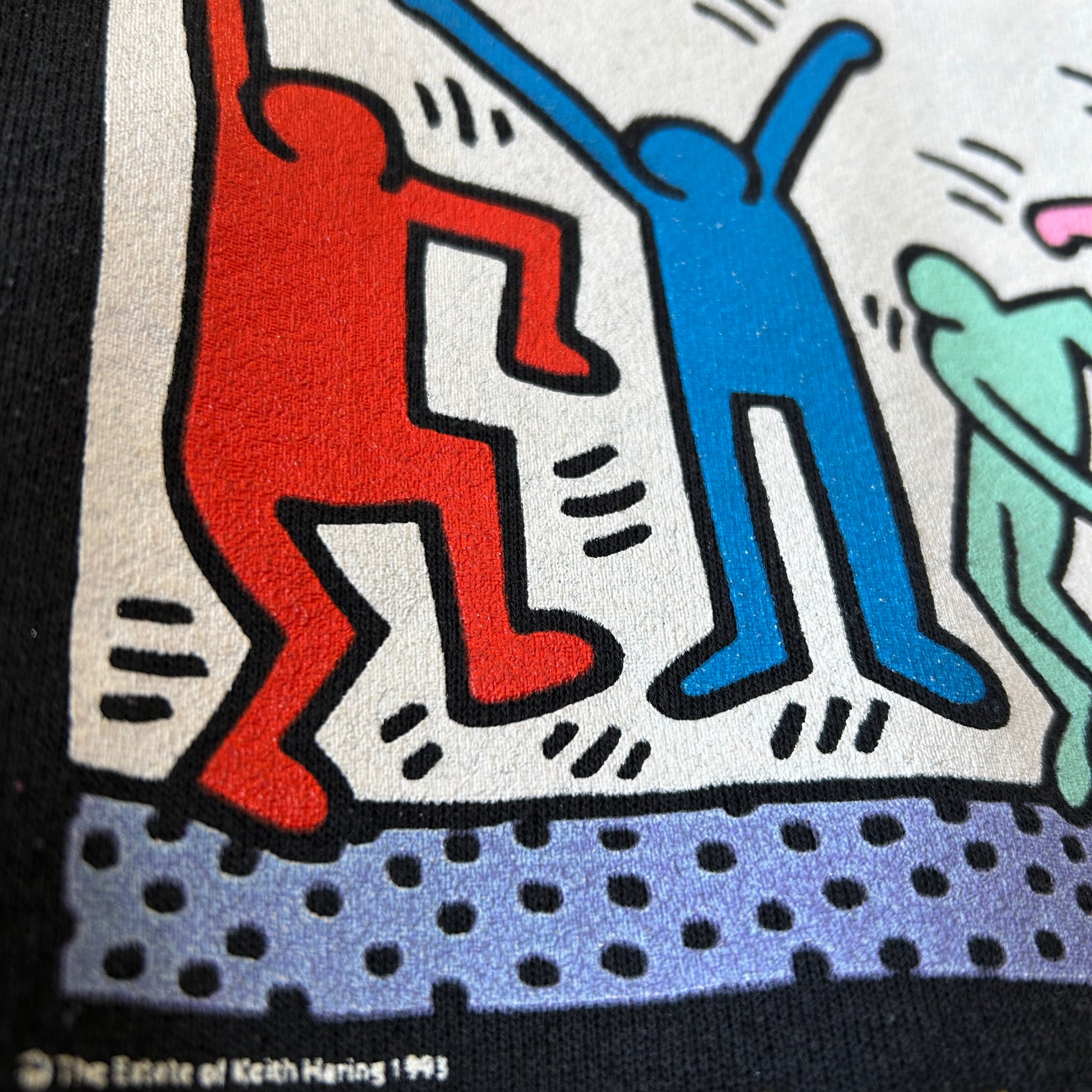 【商品詳細】AIDS Dance-A-Tonは、エイズ撲滅と支援の為のチャリティイベントです。長時間のダンスを通じて資金を集め、エイズ患者のケアや研究を支援するもので、限定グッズとしてTシャツやスウェットなどが販売されていました。こちらはキース・ヘリングのアートワークが使用された1993年の物です。
