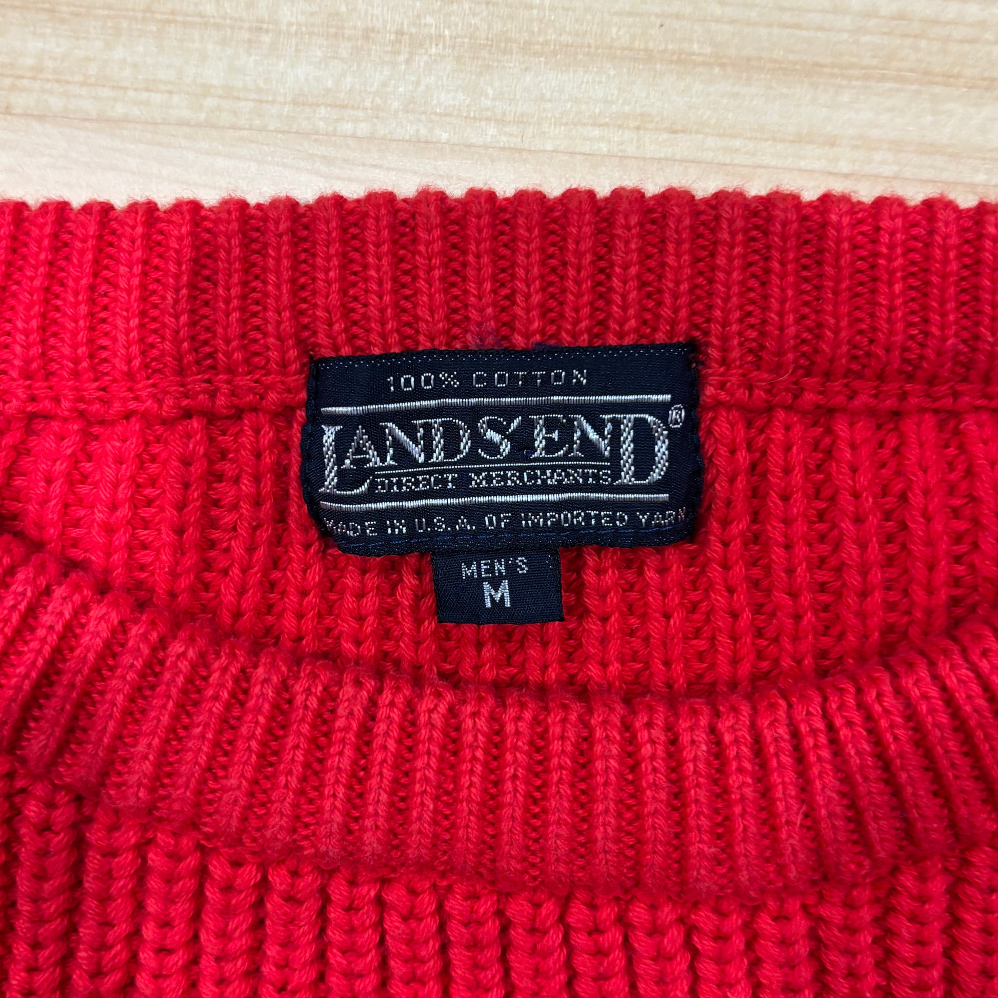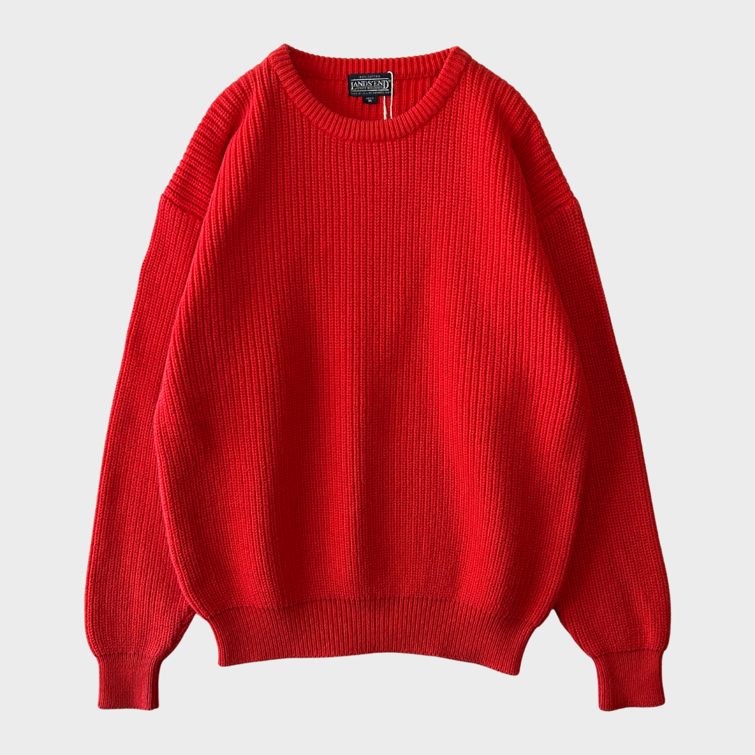 90's Lands'end ランズエンド コットンニット 赤 (M)/A8833K-SO