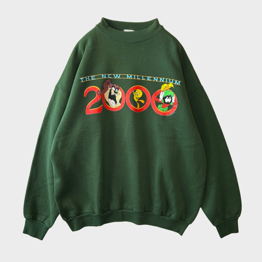 00's ルーニーテューンズ THE NEW MILLENNIUM 2000 プリント スウェット 緑 XL /A7901S-SO