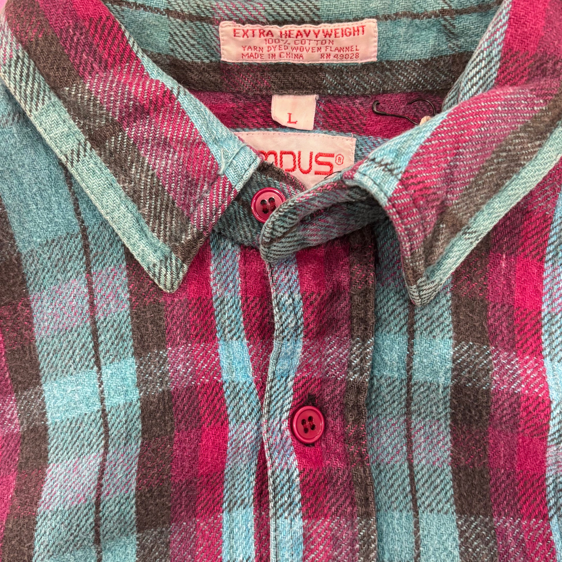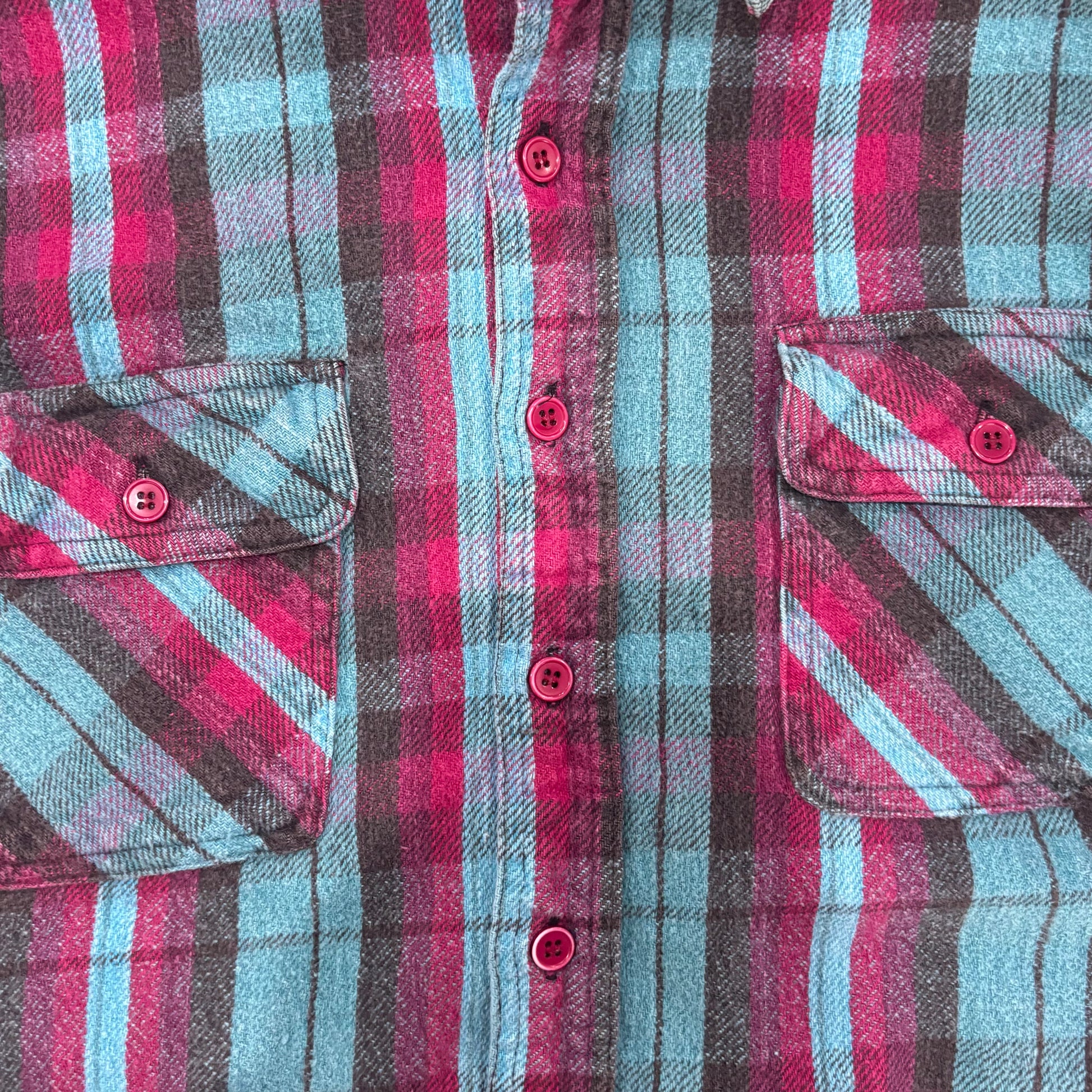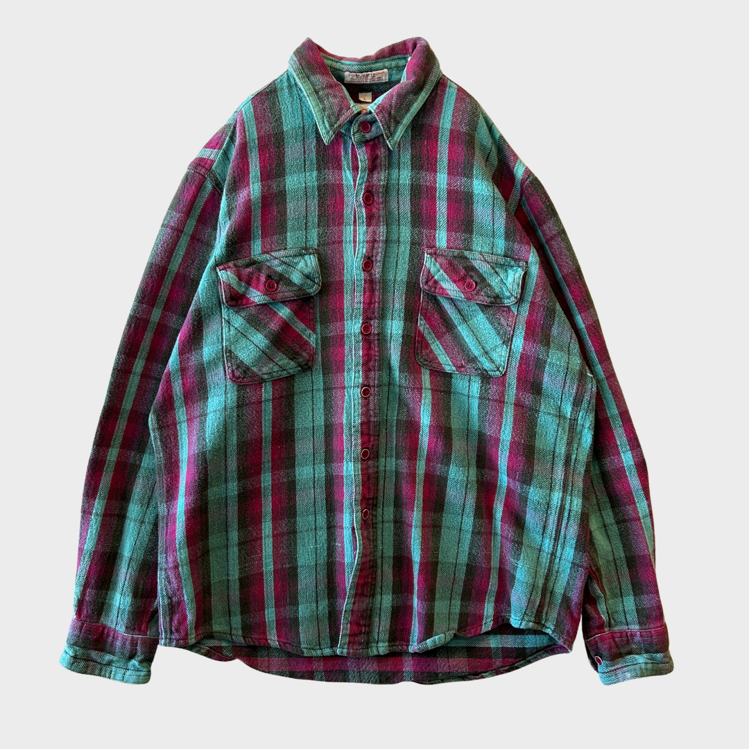 00's Campus ヘビーウェイト フランネルシャツ 赤黒水色 (L)/A8811S-SO