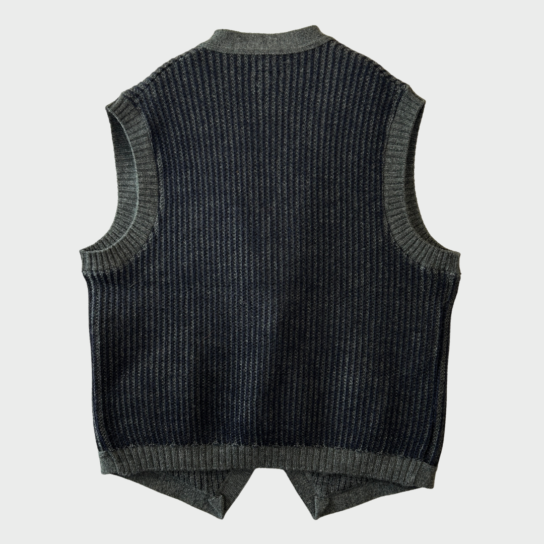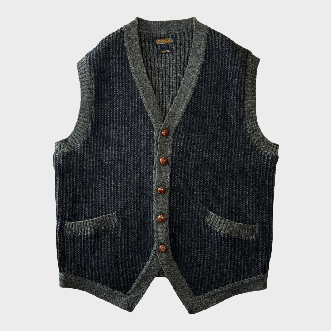 00's COACH 100%ウールベスト ストライプ ネイビー/グレー(S)/B3099V-SO