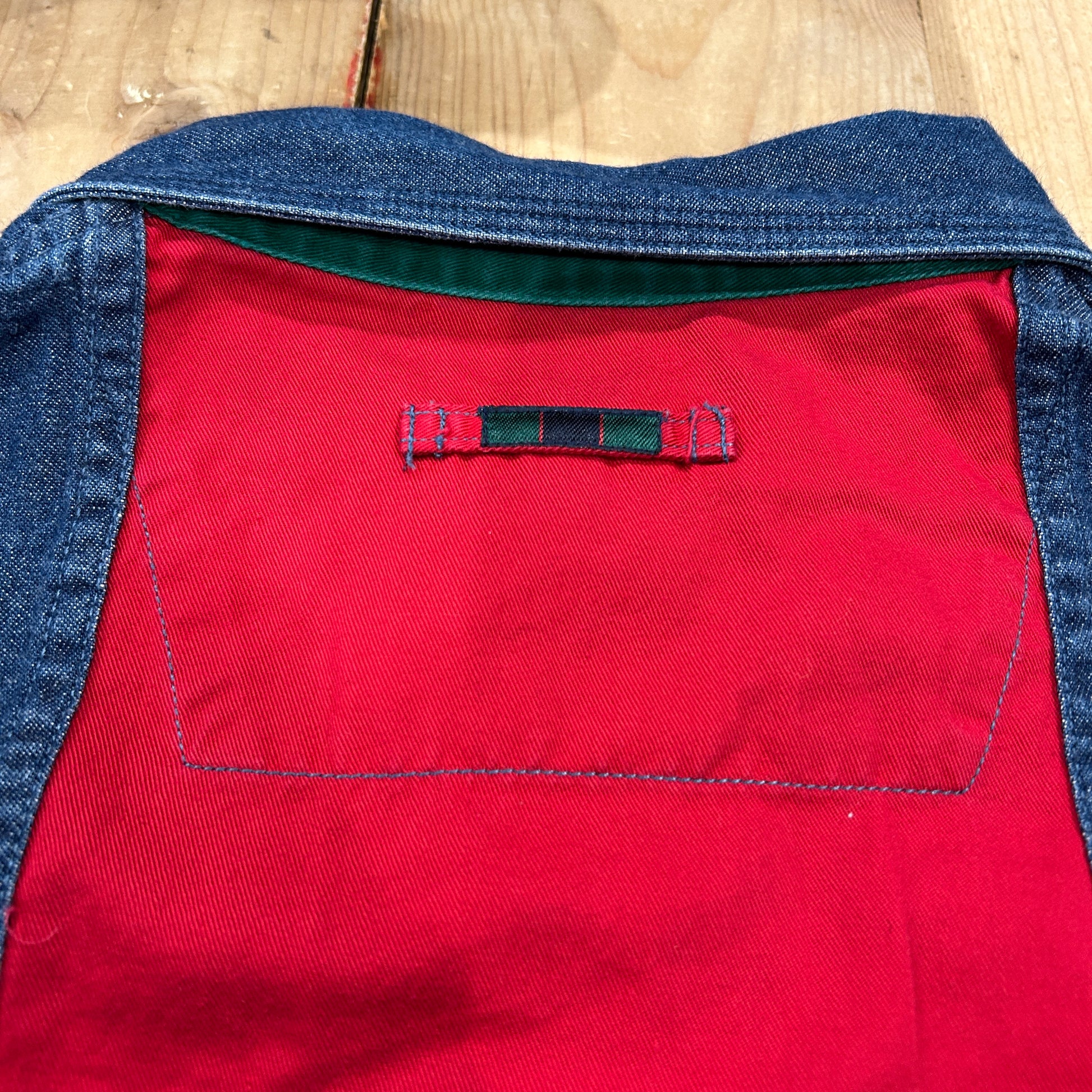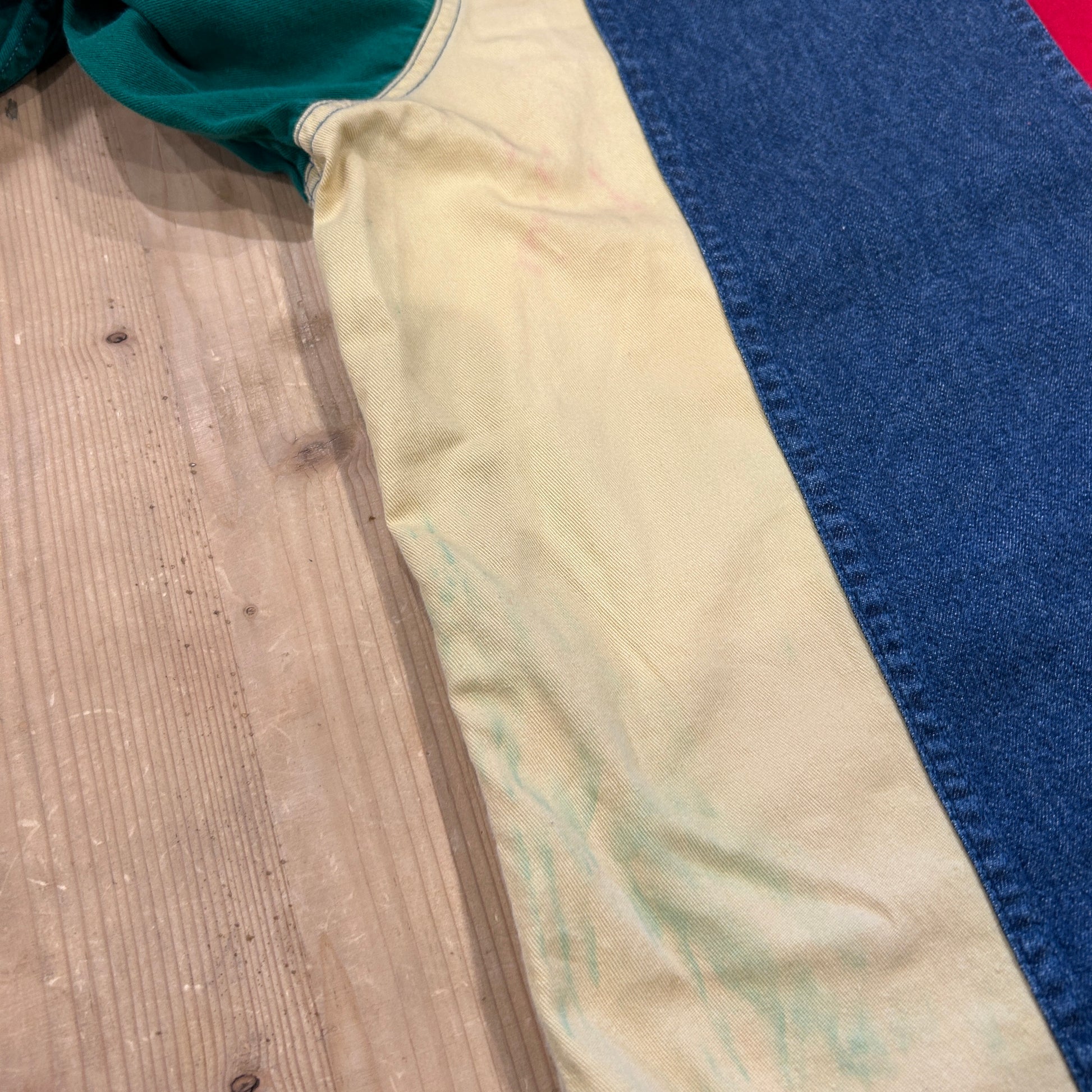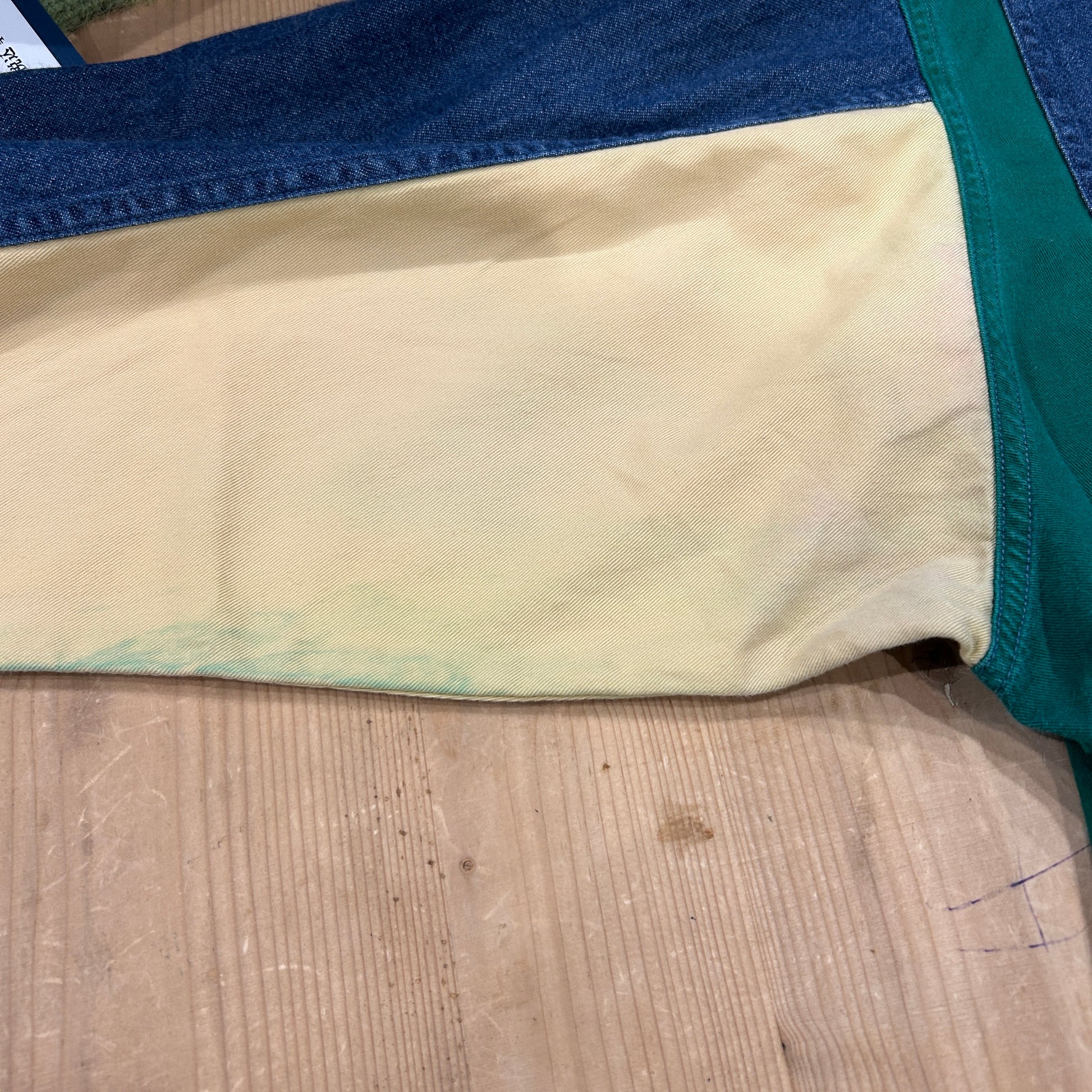 [状態特記]全体的に使用感あり、フロントボタンに溶け・ダメージあり、フロント赤い生地部分に黒い汚れ複数あり、黄色生地部分に全体的に汚れ・他の生地からの色移りあり