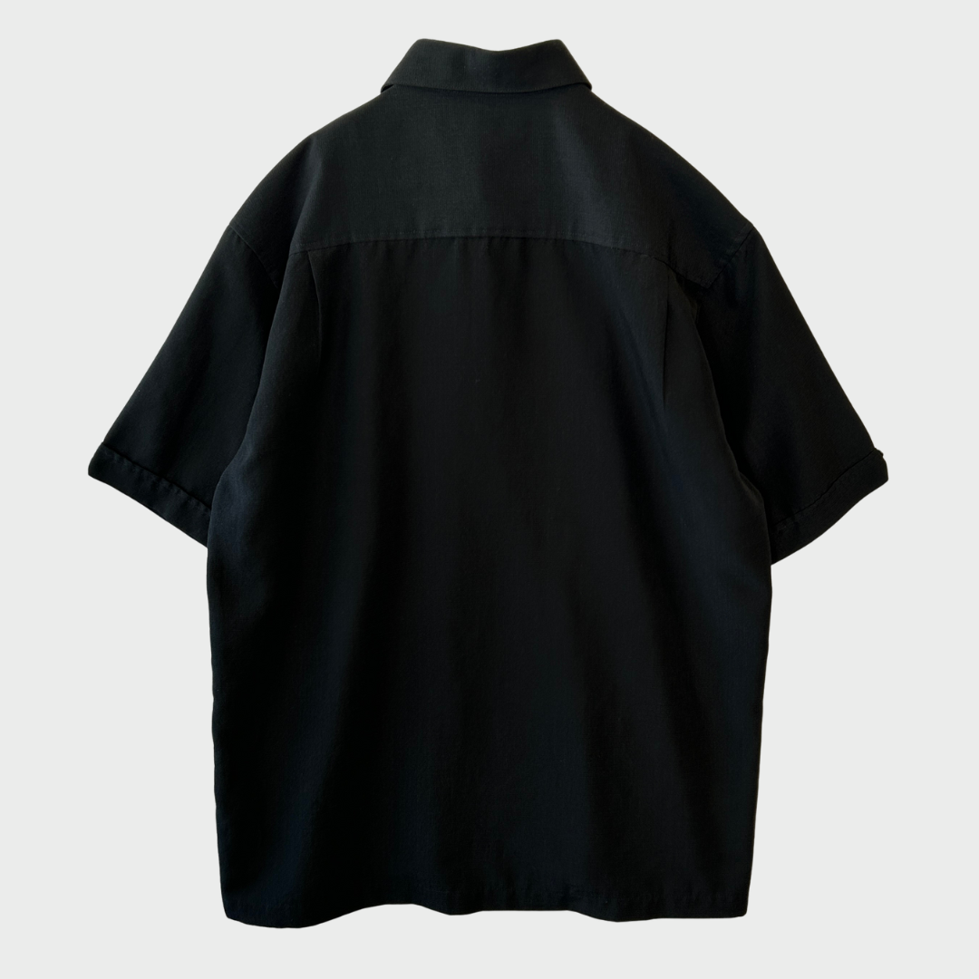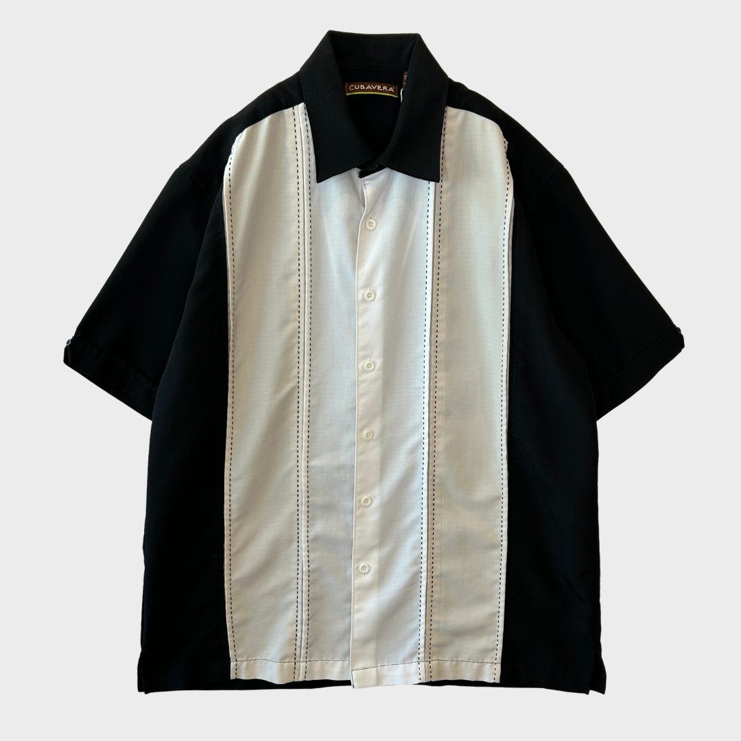 00's CUBAVERA キューバシャツ 半袖 ピンタックシャツ 黒白 (L)/A6606S-SO