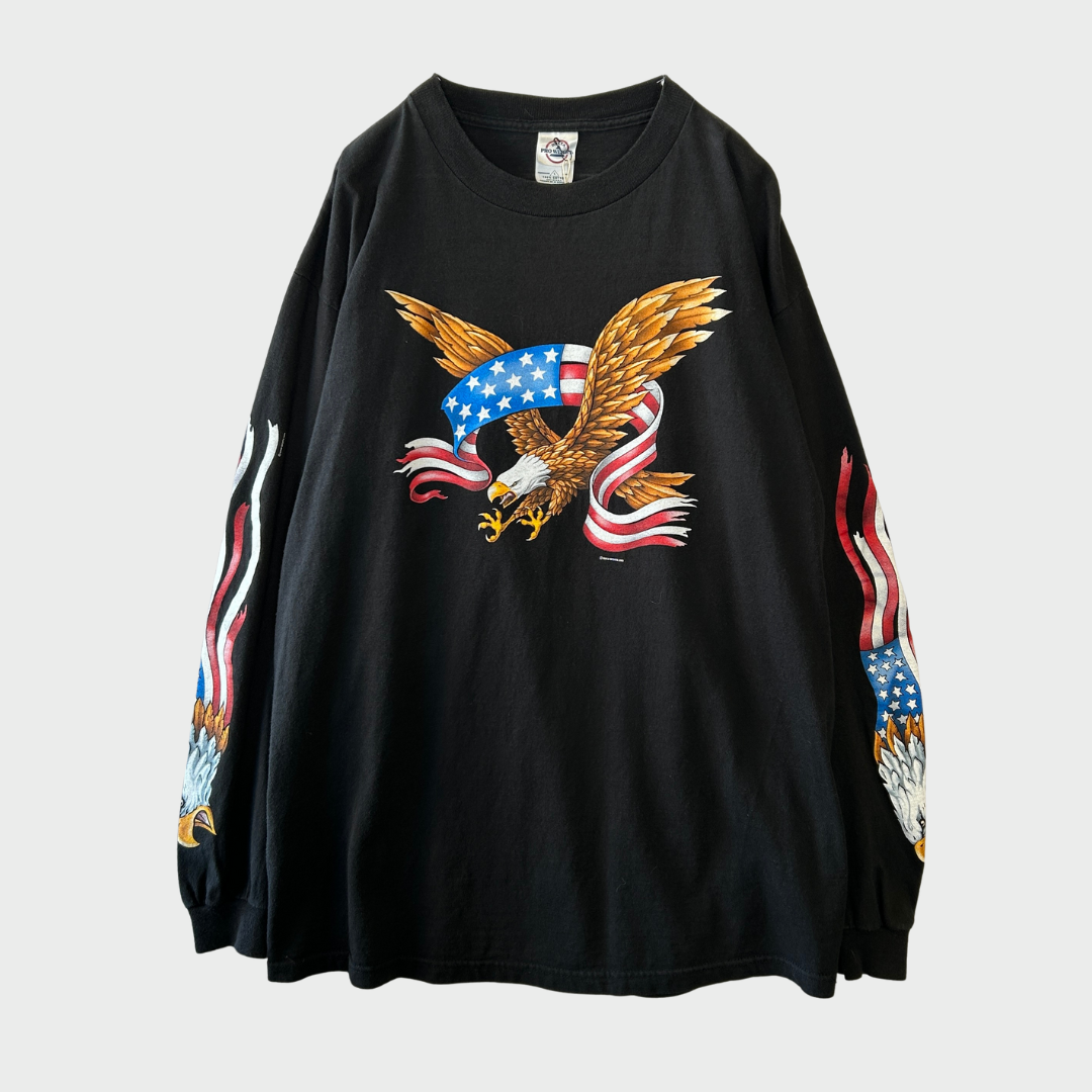 00's DELTA HOT LEATHERS 袖プリント ロンT 黒 (L) /A8808T-SO