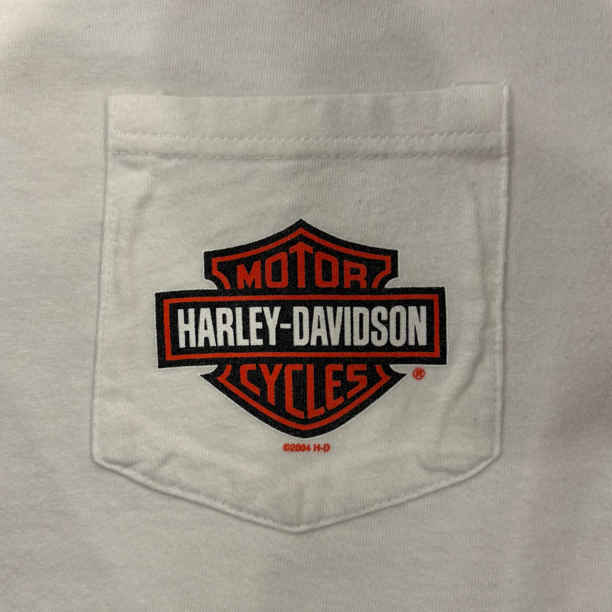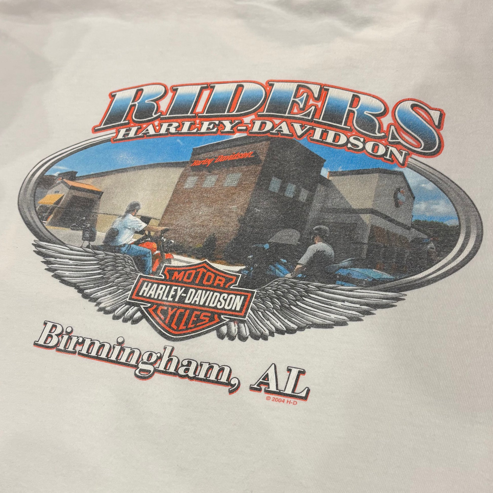 00's HAREY-DAVIDSON Birmingham,AL ファイヤーパターン 袖プリント ロンT 白 (2XL) /B3247T-SO