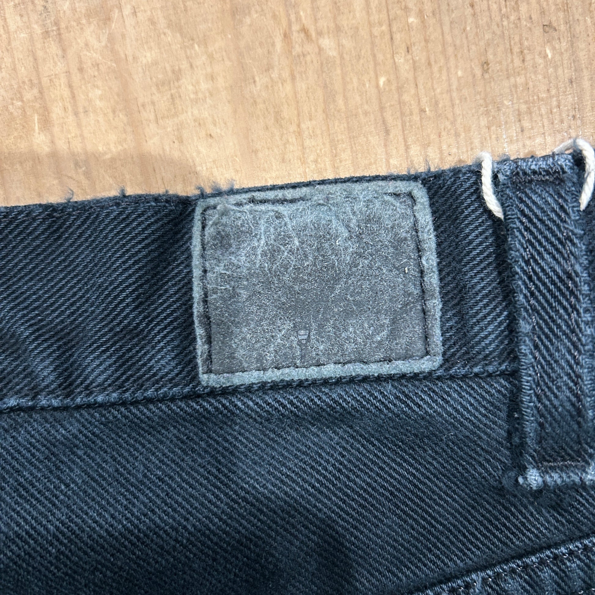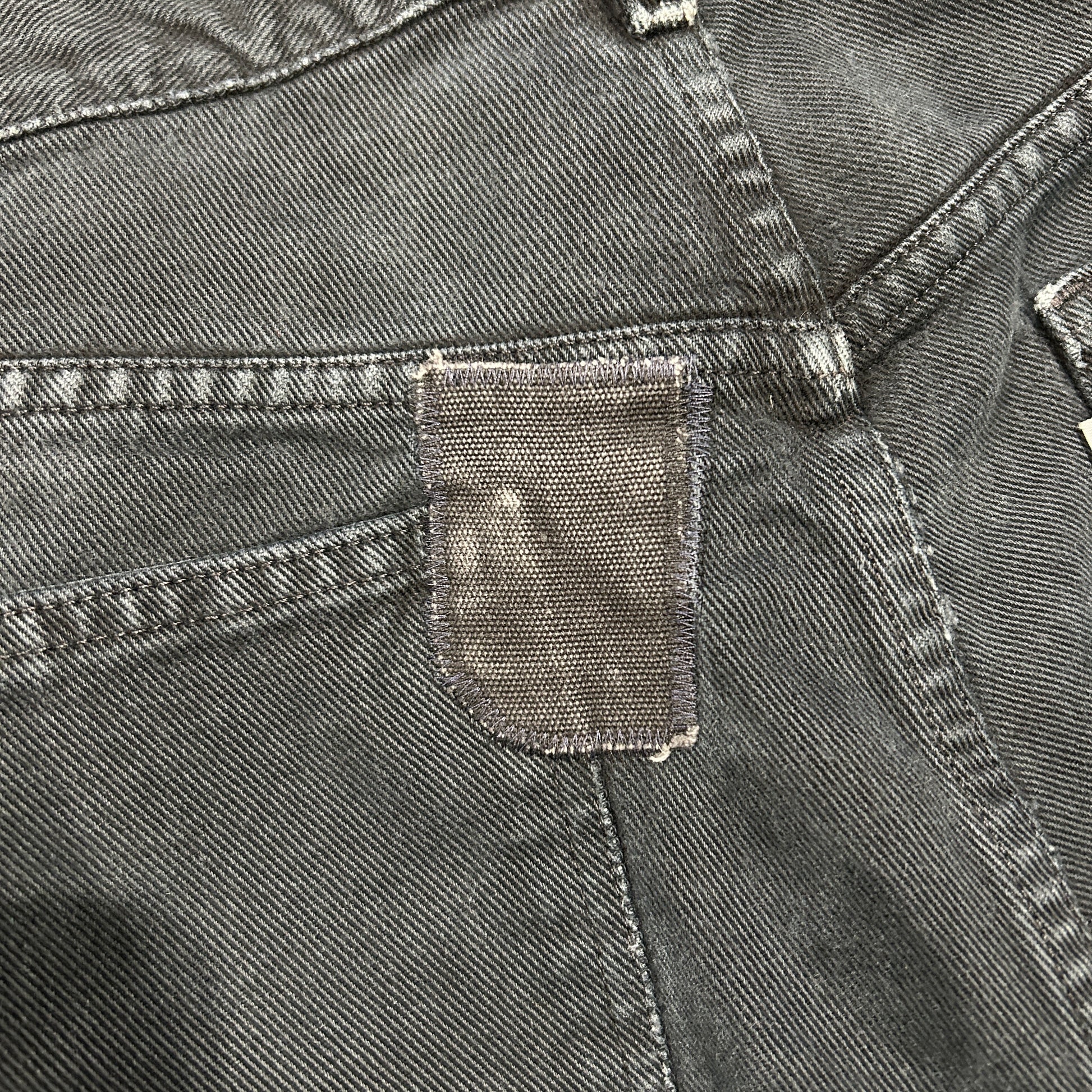 [状態特記]全体的に使用感あり、裾直しアリ、前立て・右ポケットの縁にすれ有り、トップボタン下に赤い変色あり、右膝下付近にブリーチ汚れ有り、ベルトループ・バックポケット部分にリペア有り