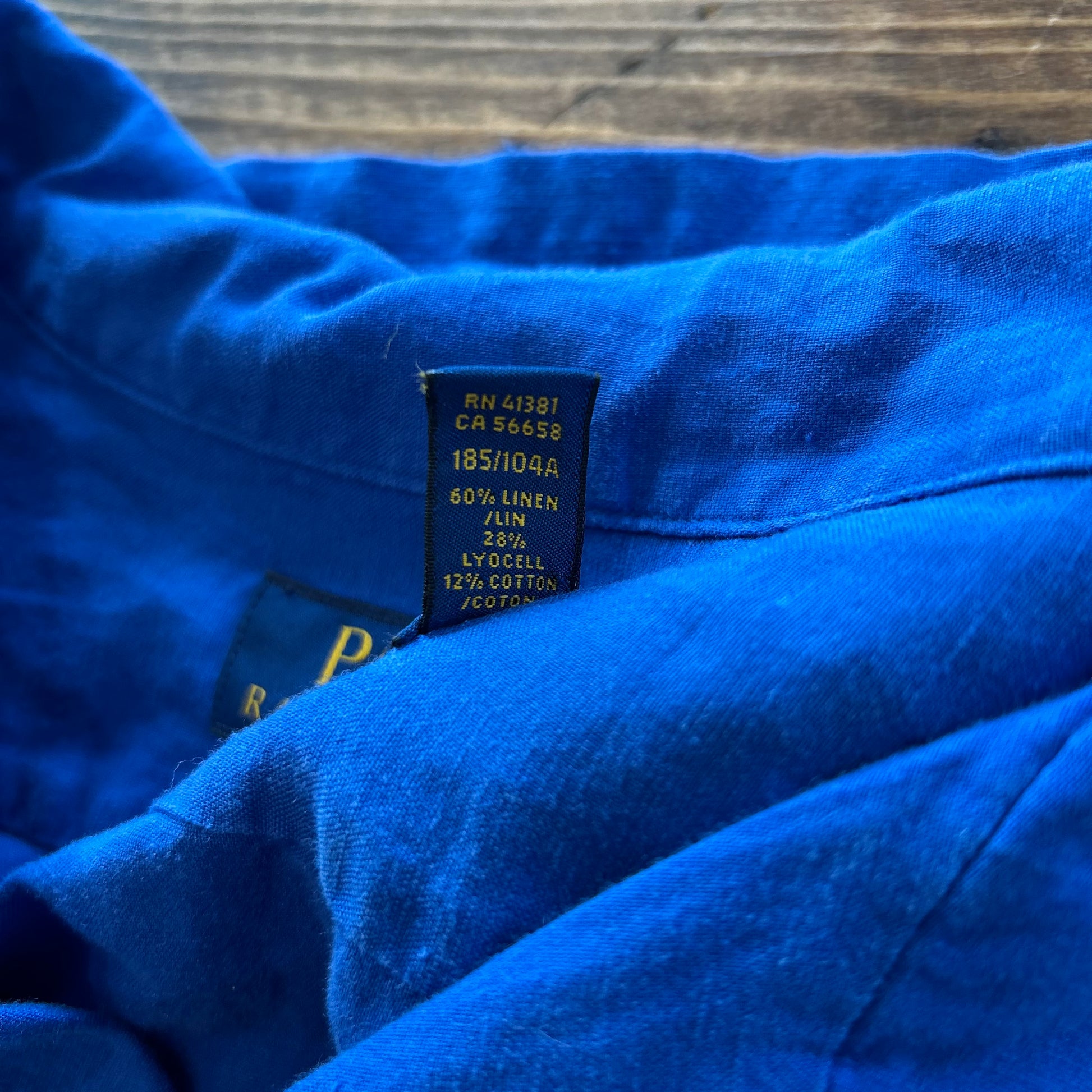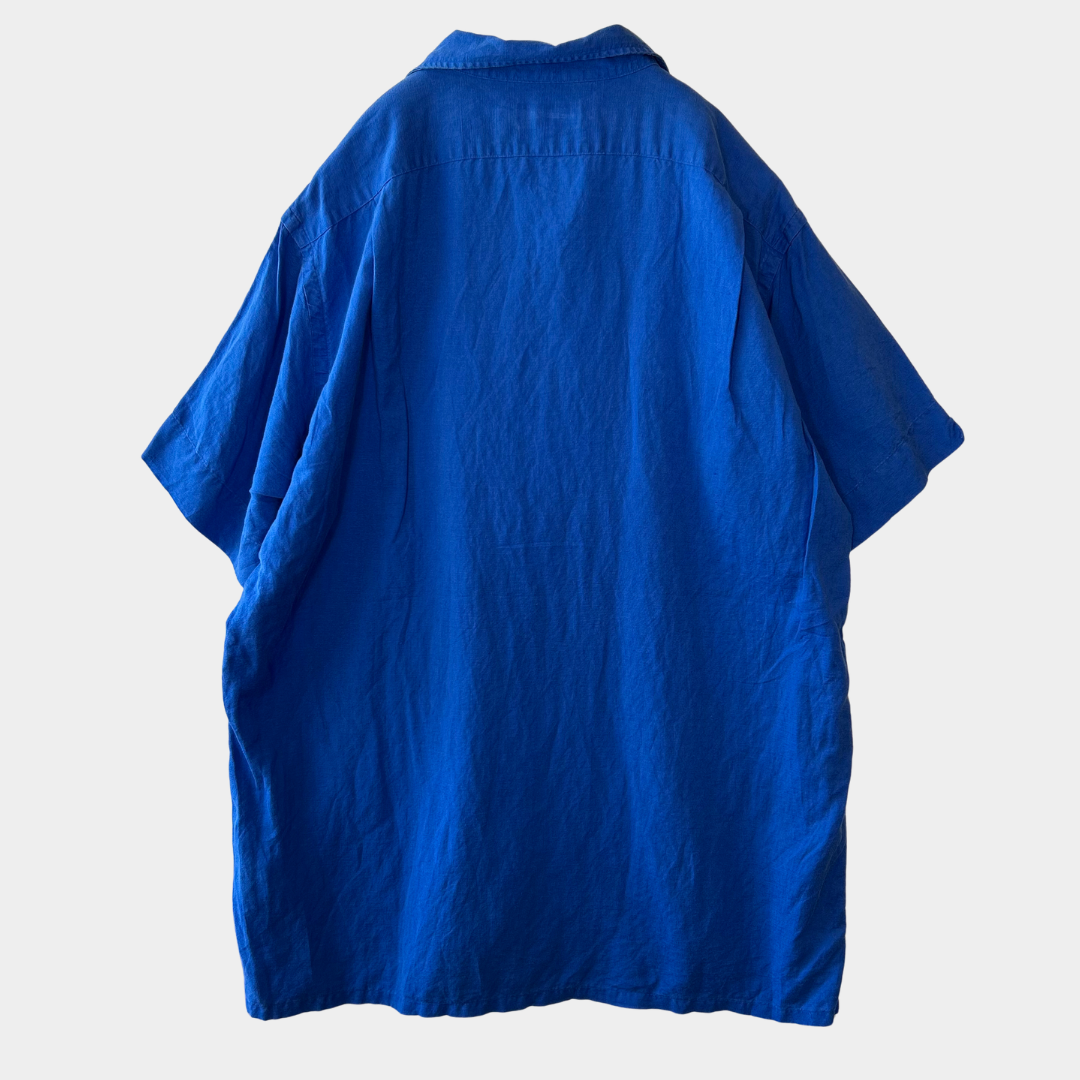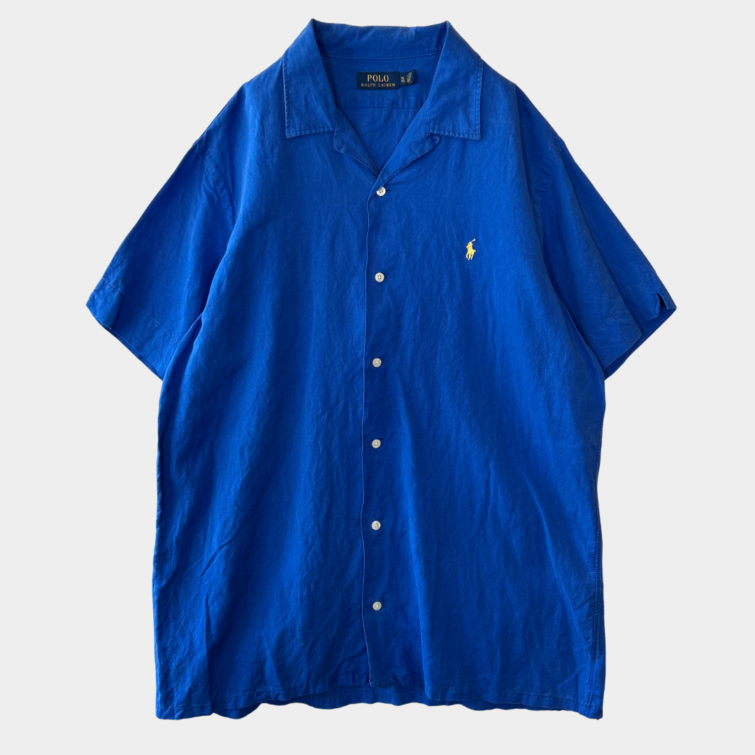 00's Polo ラルフローレン リネン混オープンカラーシャツ 青(XL)/A3008SH-SO
