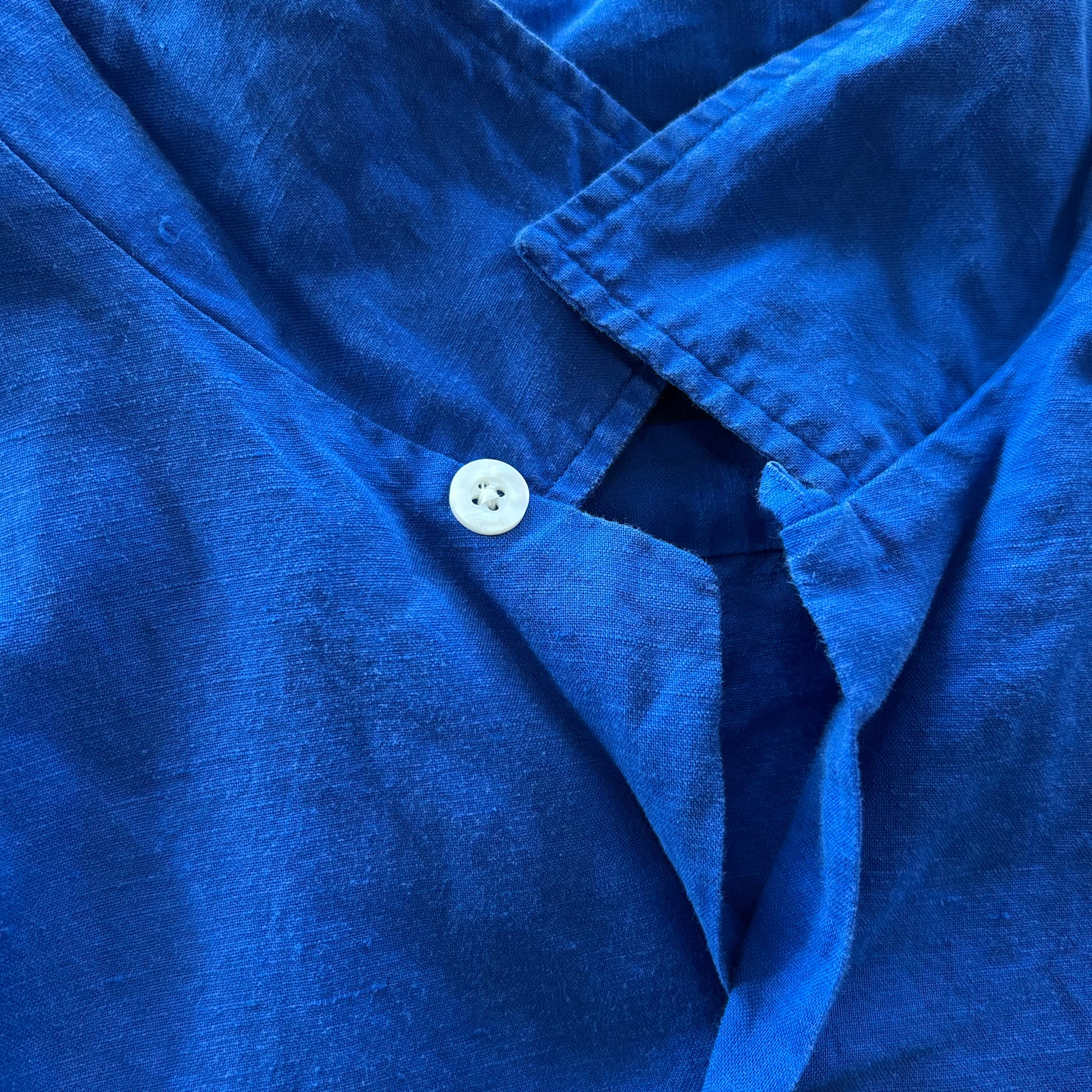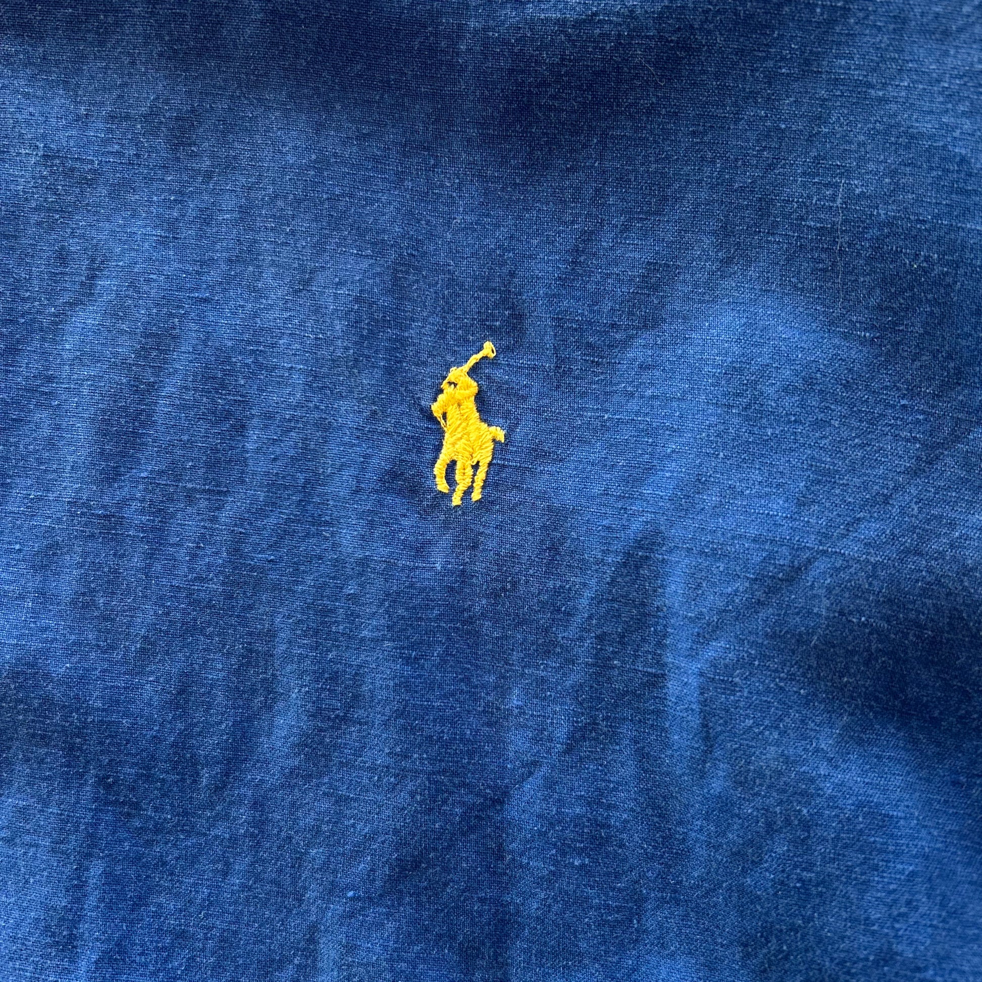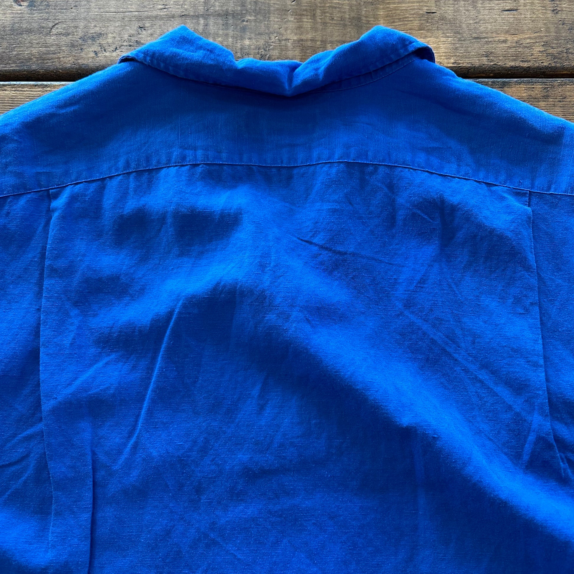 00's Polo ラルフローレン リネン混オープンカラーシャツ 青(XL)/A3008SH-SO