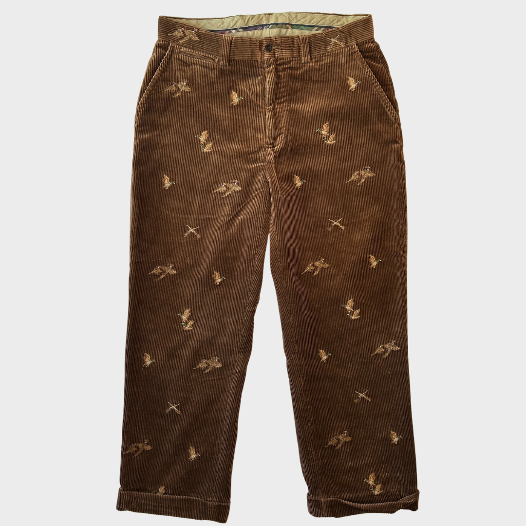 00's Polo by Ralph Lauren ラルフローレン 鳥柄 コーデュロイパンツ 茶 (33×30)/A8609P-SO
