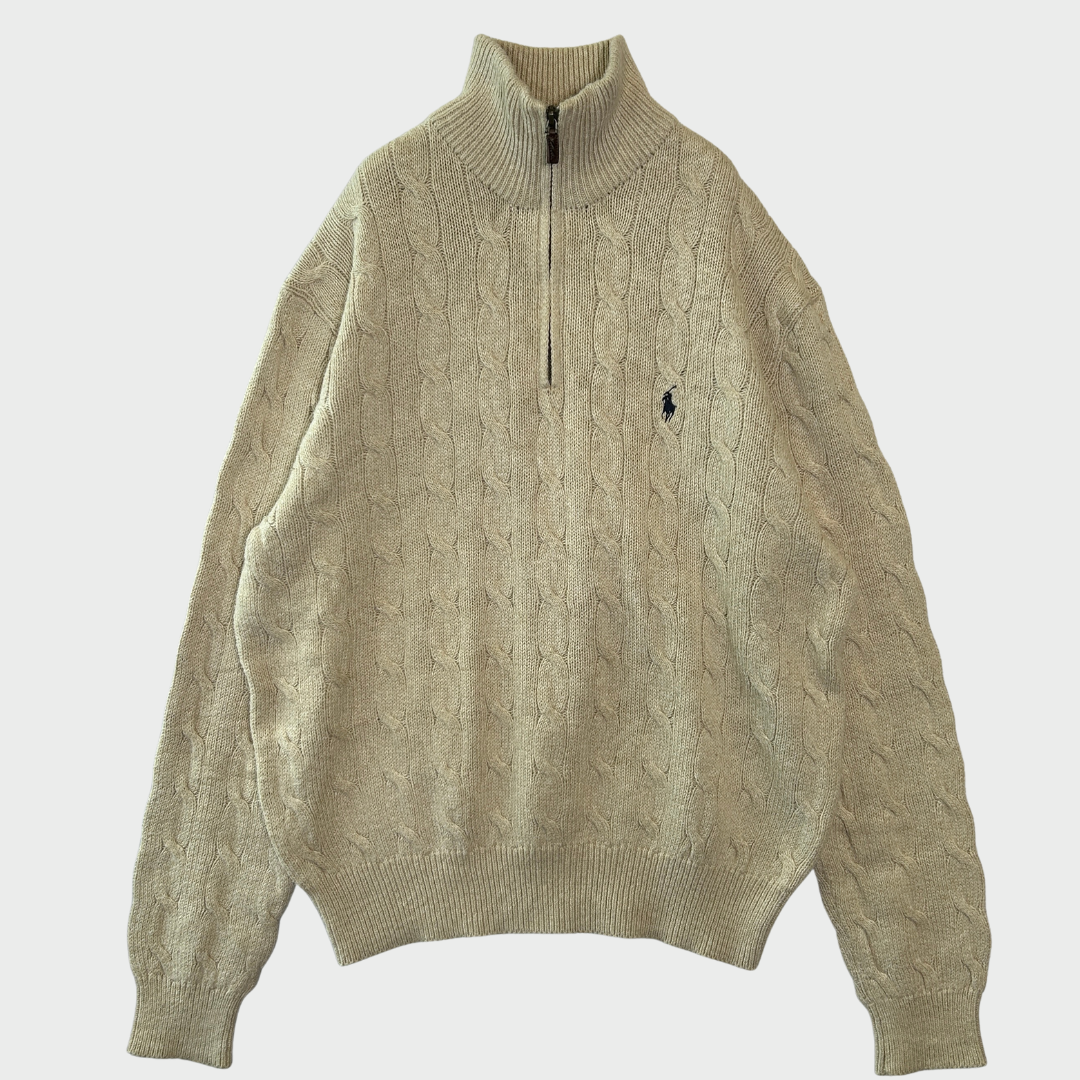 00's POLO RALPH LAUREN ハーフジップ ケーブルニット ベージュ M /A1498K-SO