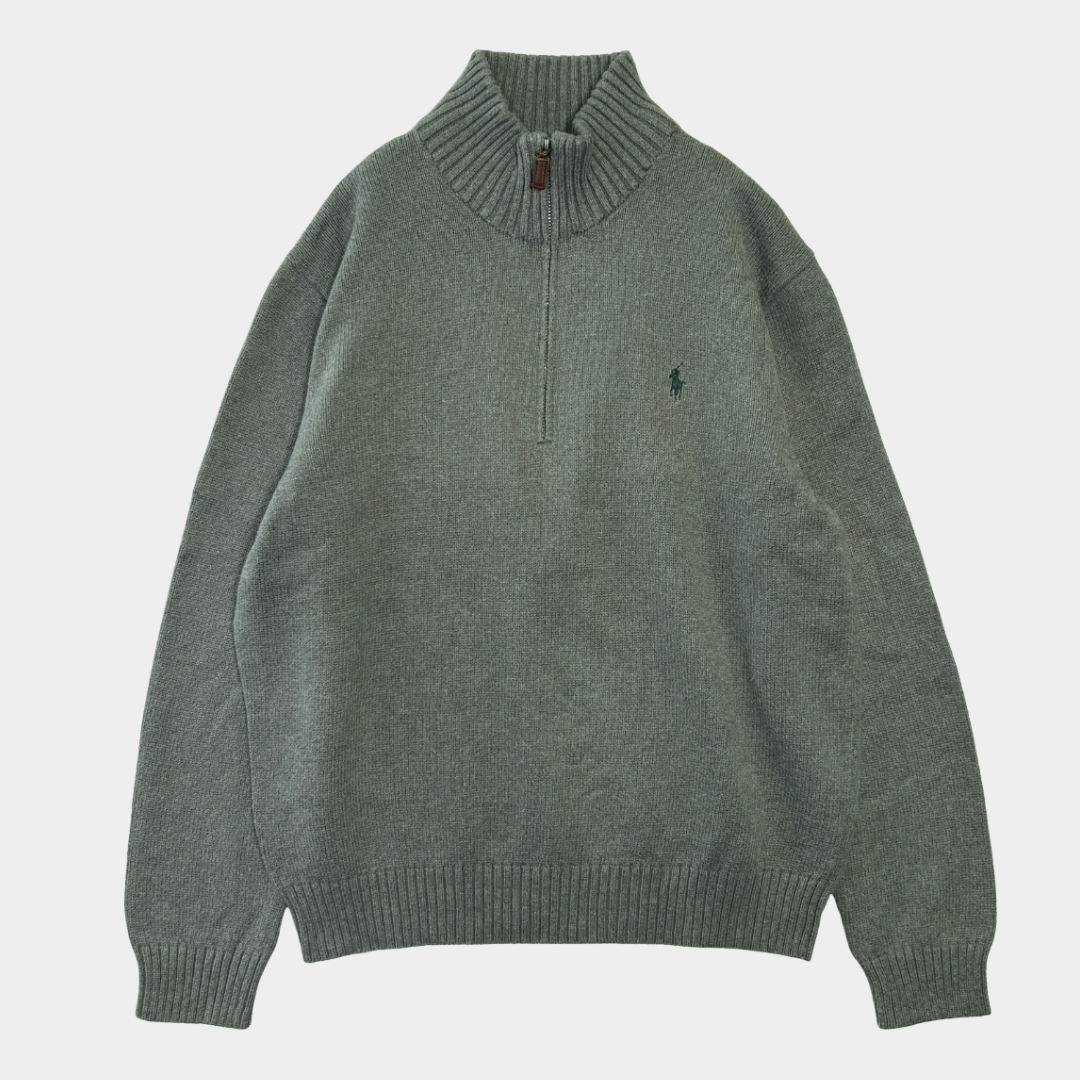 00's POLO RALPH LAUREN ハーフジップ コットンニット グレー L /B1497K-SO
