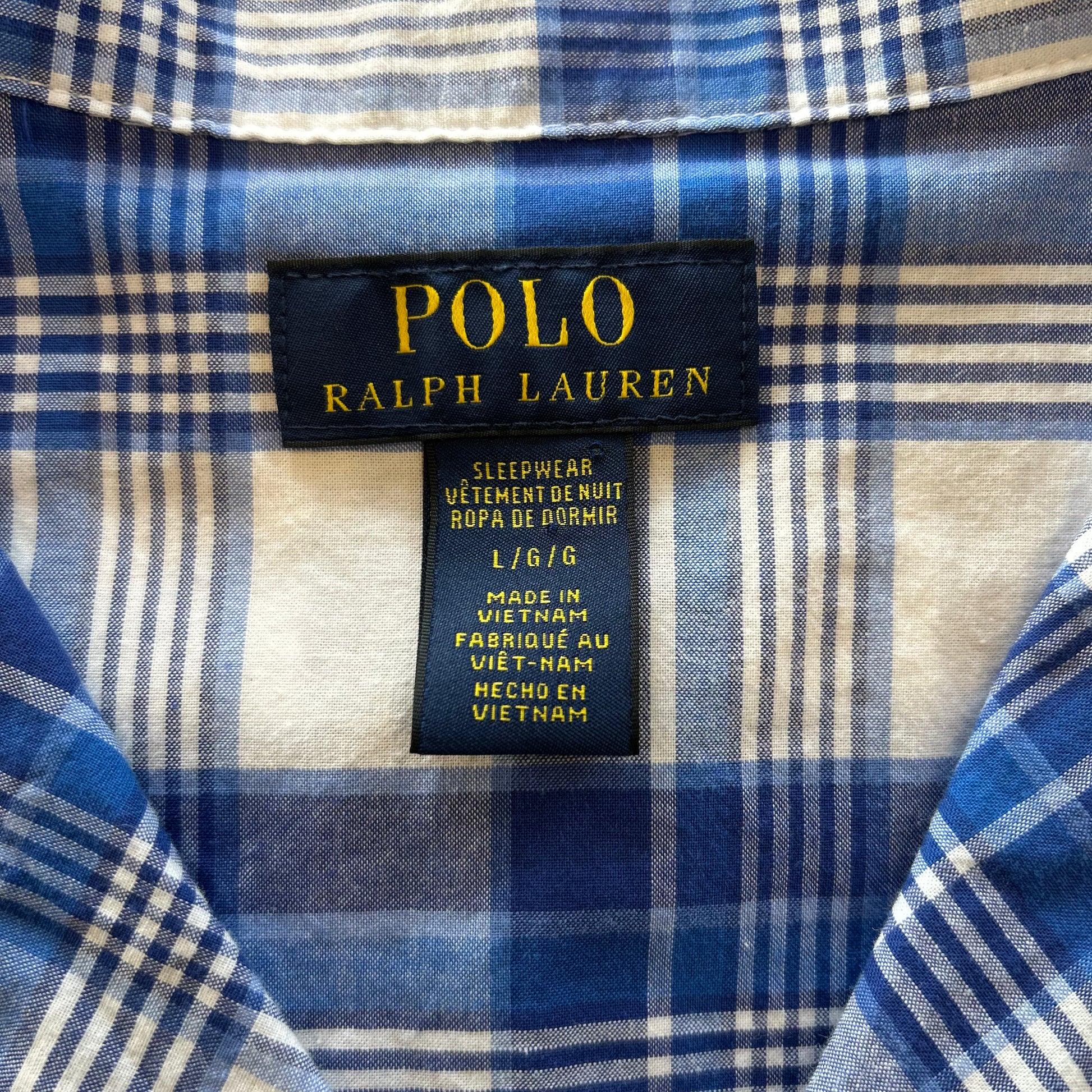 00's Polo Ralph Lauren ラルフローレン オープンカラーチェックシャツ 青白(L)/A3747SH-SO