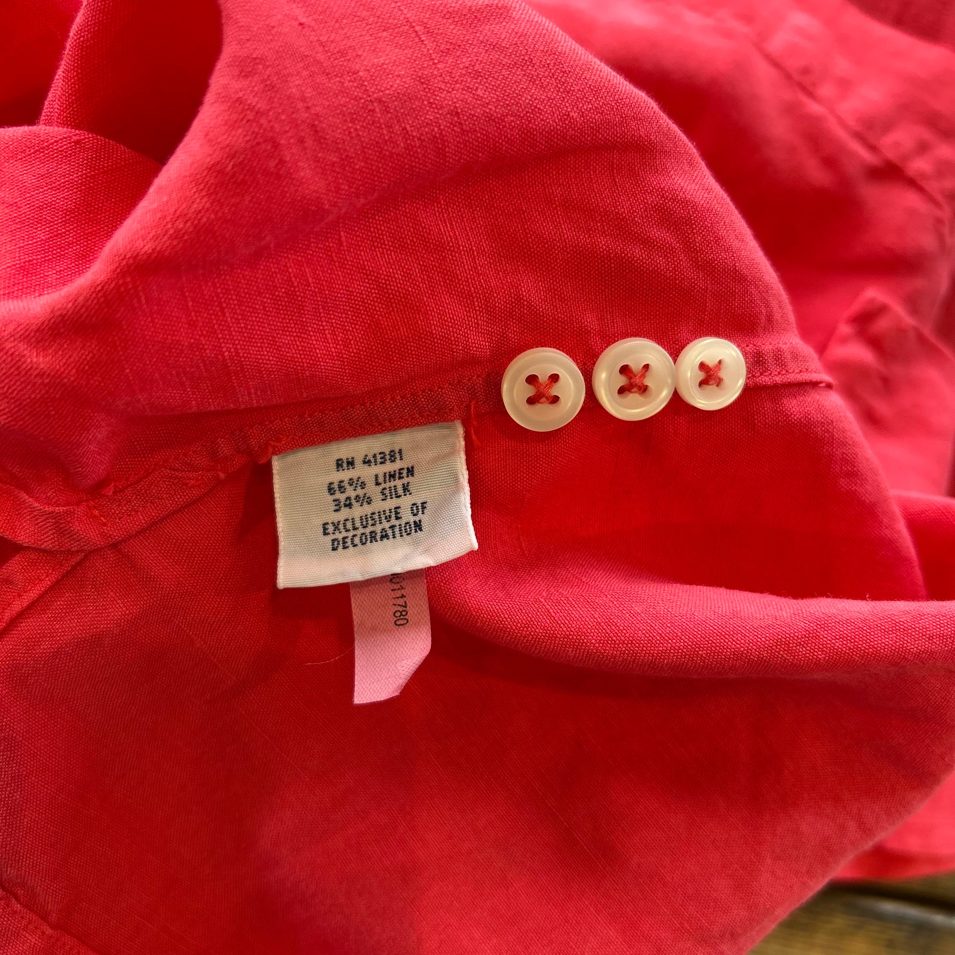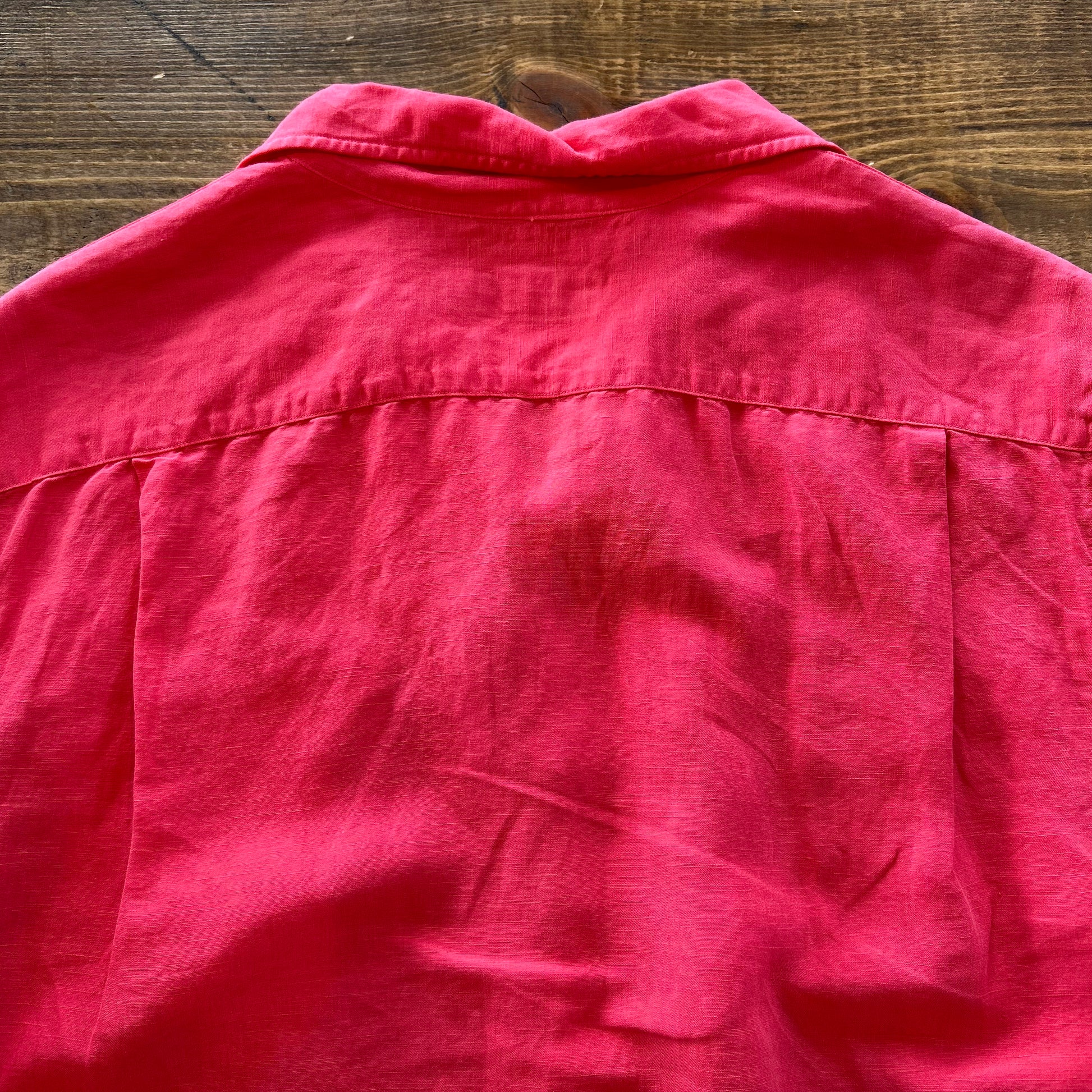 00's Polo Ralph Lauren ラルフ シルク/リネン オープンカラーシャツ 裾ポニー ピンク(M)/A3019SH-SO